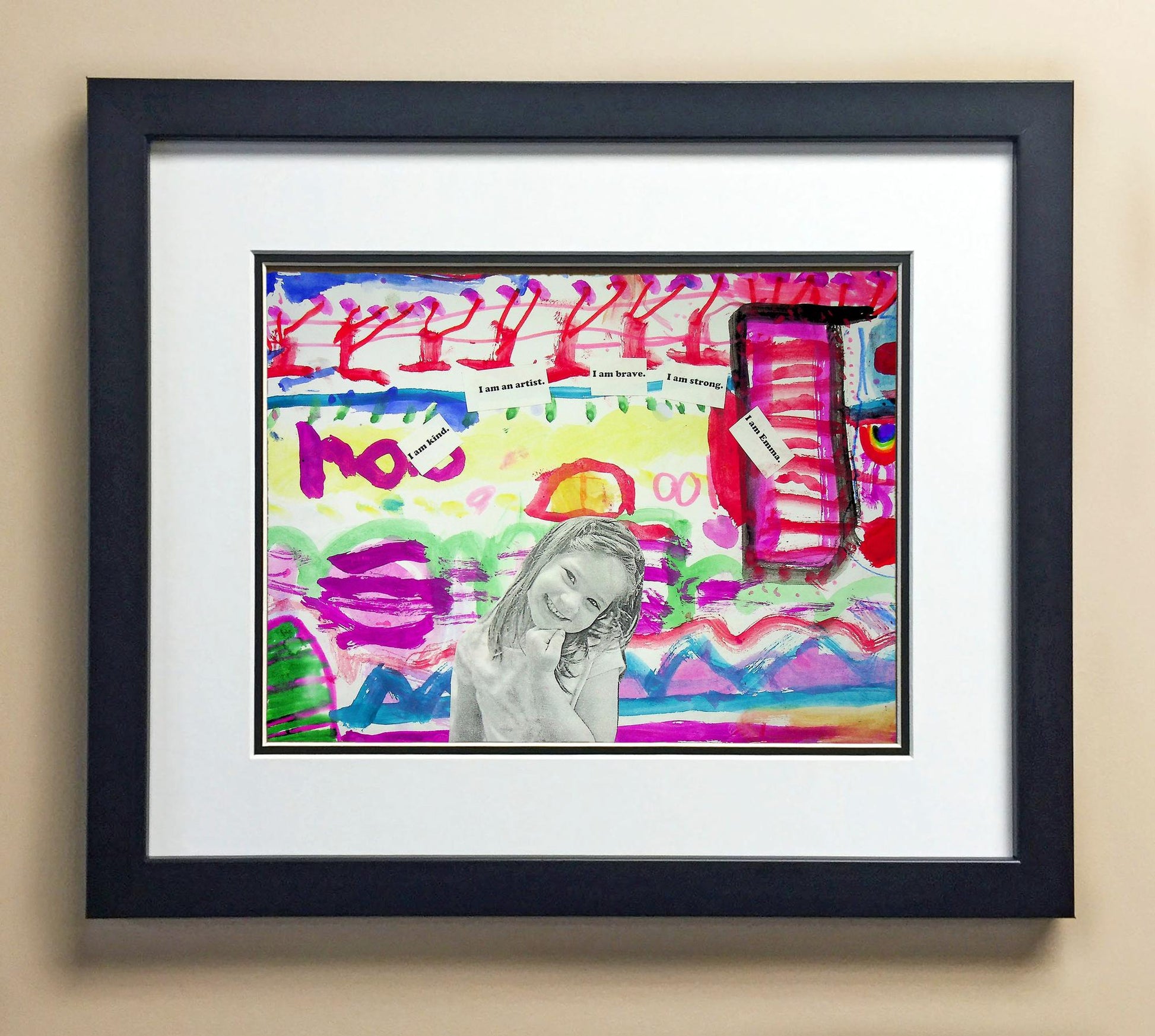 Included with the purchase is the Students Artwork, Frame, double matboard, shatter proof plexiglass, and a ready to hang backerboard with turnbuttons