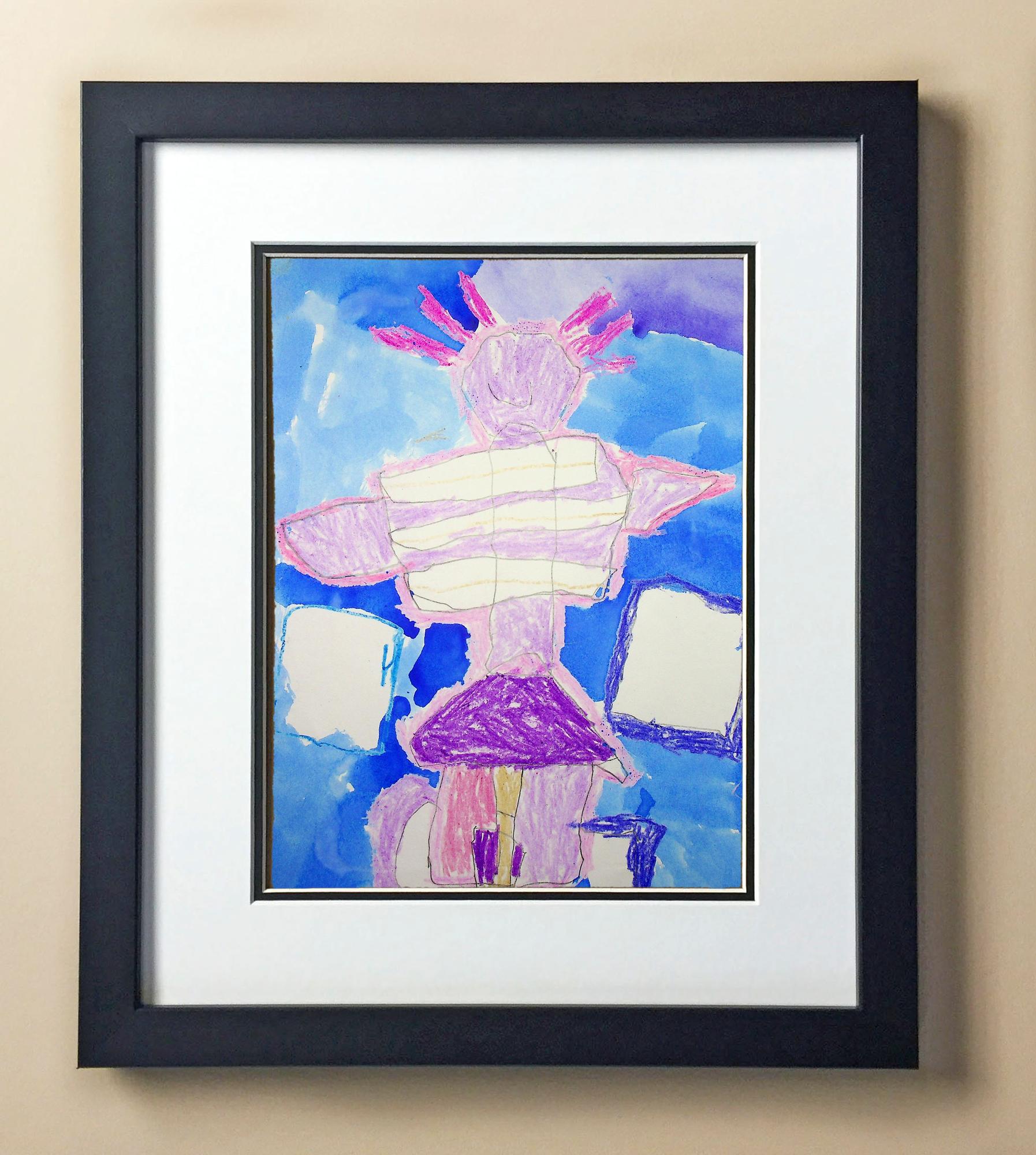 Included with the purchase is the Students Artwork, Frame, double matboard, shatter proof plexiglass, and a ready to hang backerboard with turnbuttons