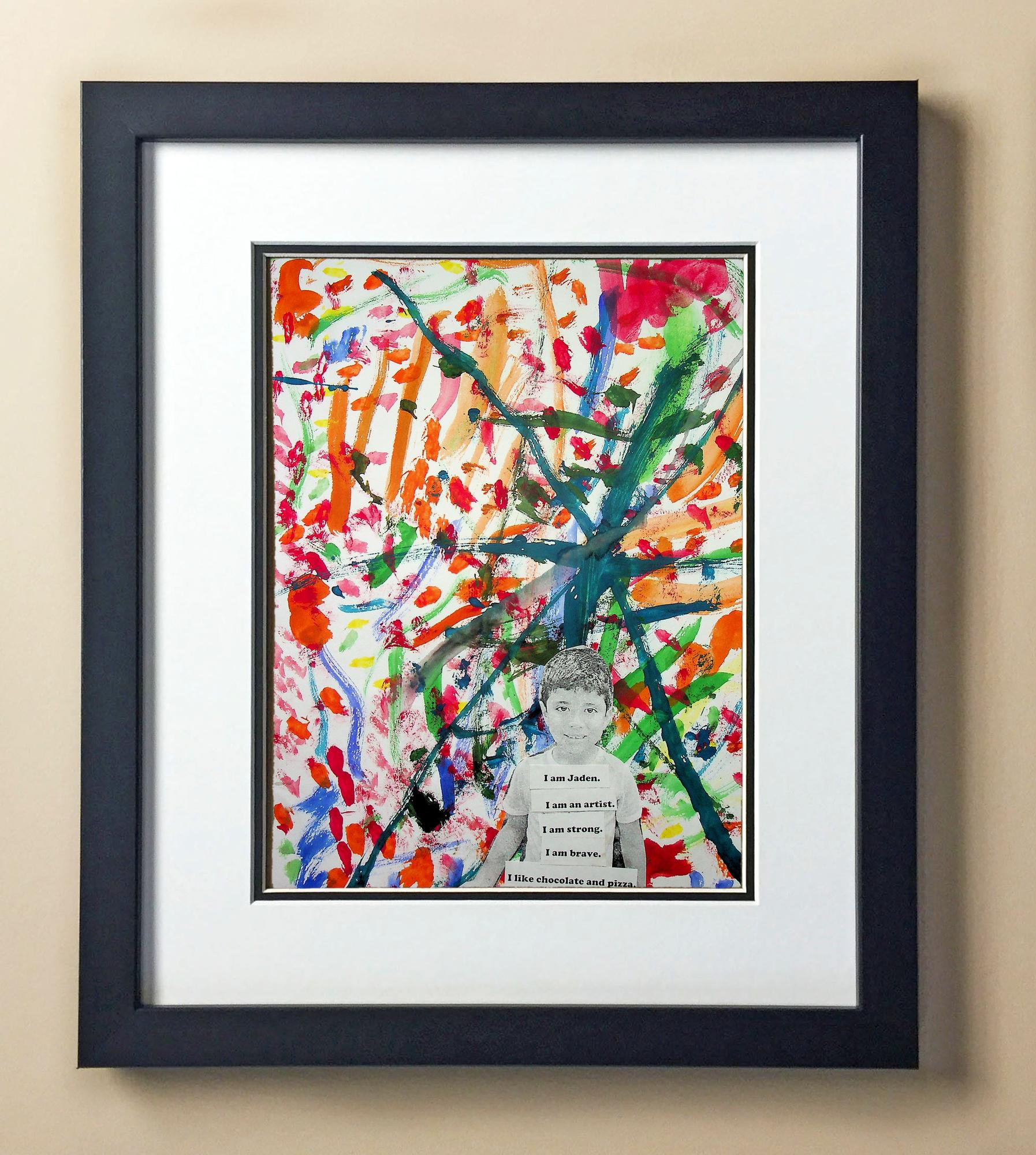 Included with the purchase is the Students Artwork, Frame, double matboard, shatter proof plexiglass, and a ready to hang backerboard with turnbuttons