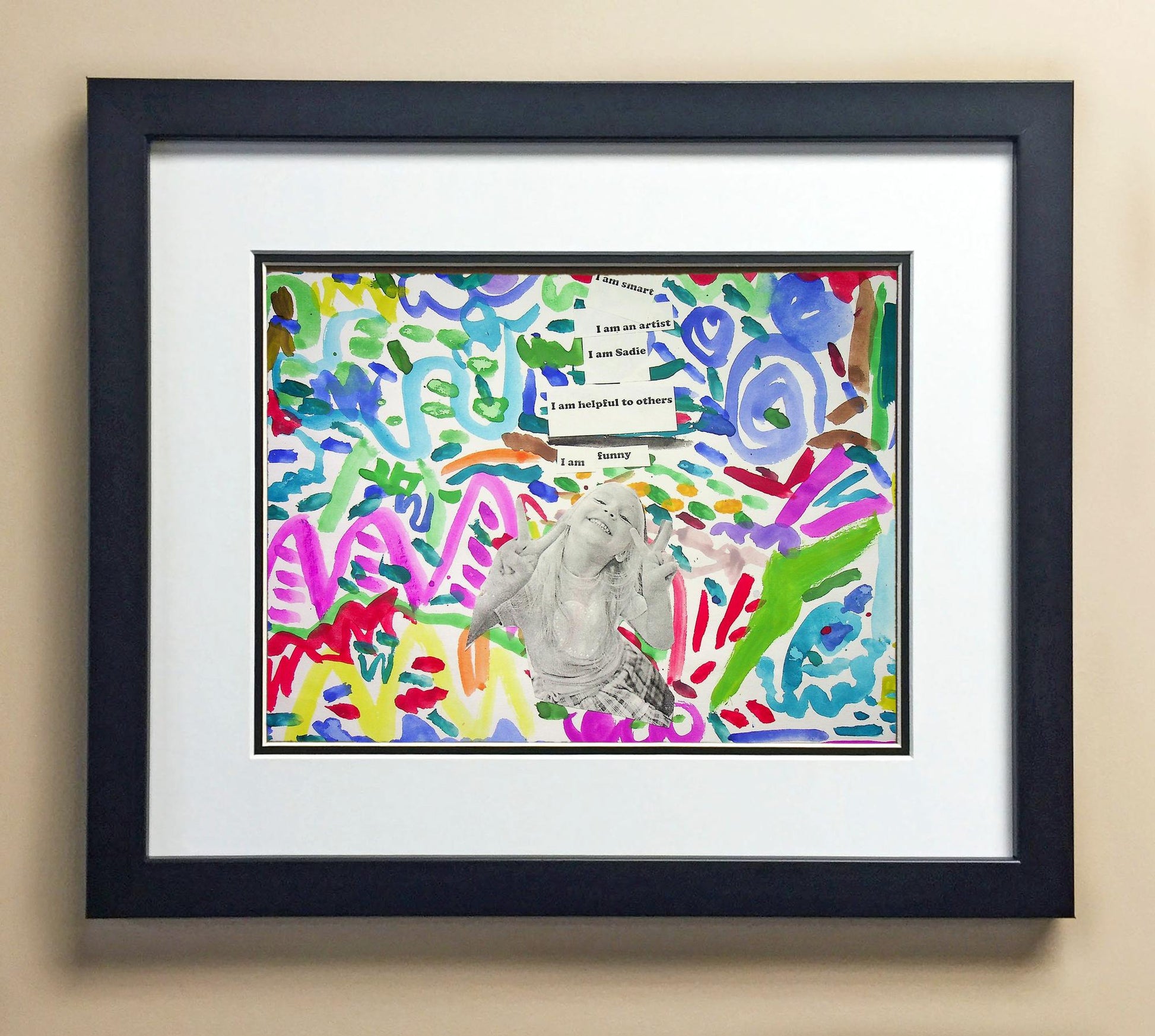 Included with the purchase is the Students Artwork, Frame, double matboard, shatter proof plexiglass, and a ready to hang backerboard with turnbuttons