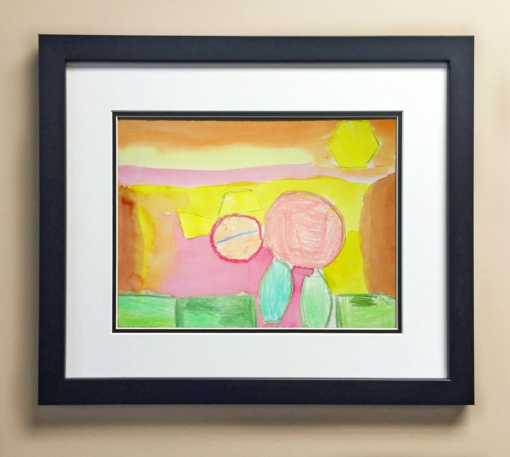 Included with the purchase is the Students Artwork, Frame, double matboard, shatter proof plexiglass, and a ready to hang backerboard with turnbuttons