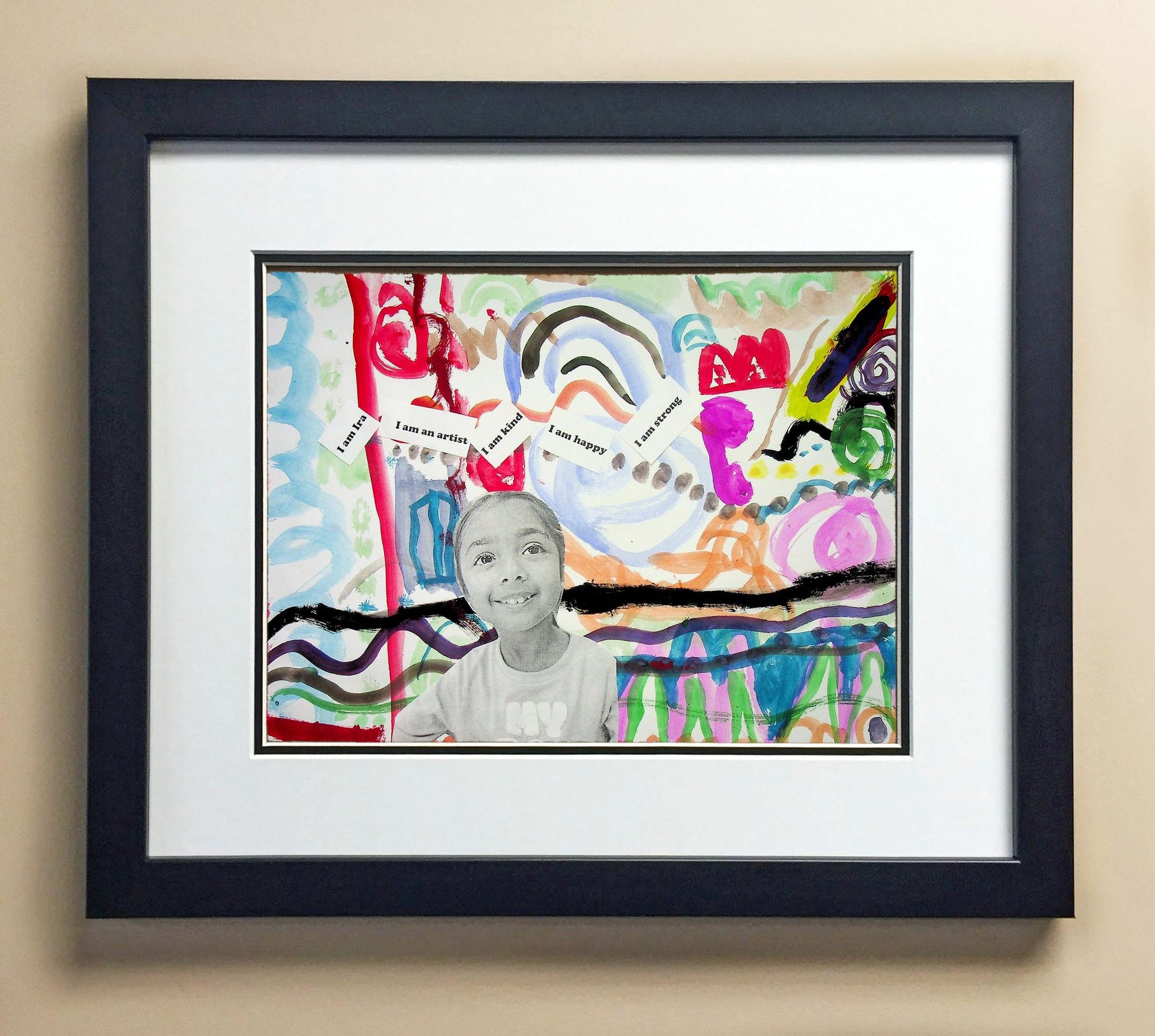 Included with the purchase is the Students Artwork, Frame, double matboard, shatter proof plexiglass, and a ready to hang backerboard with turnbuttons