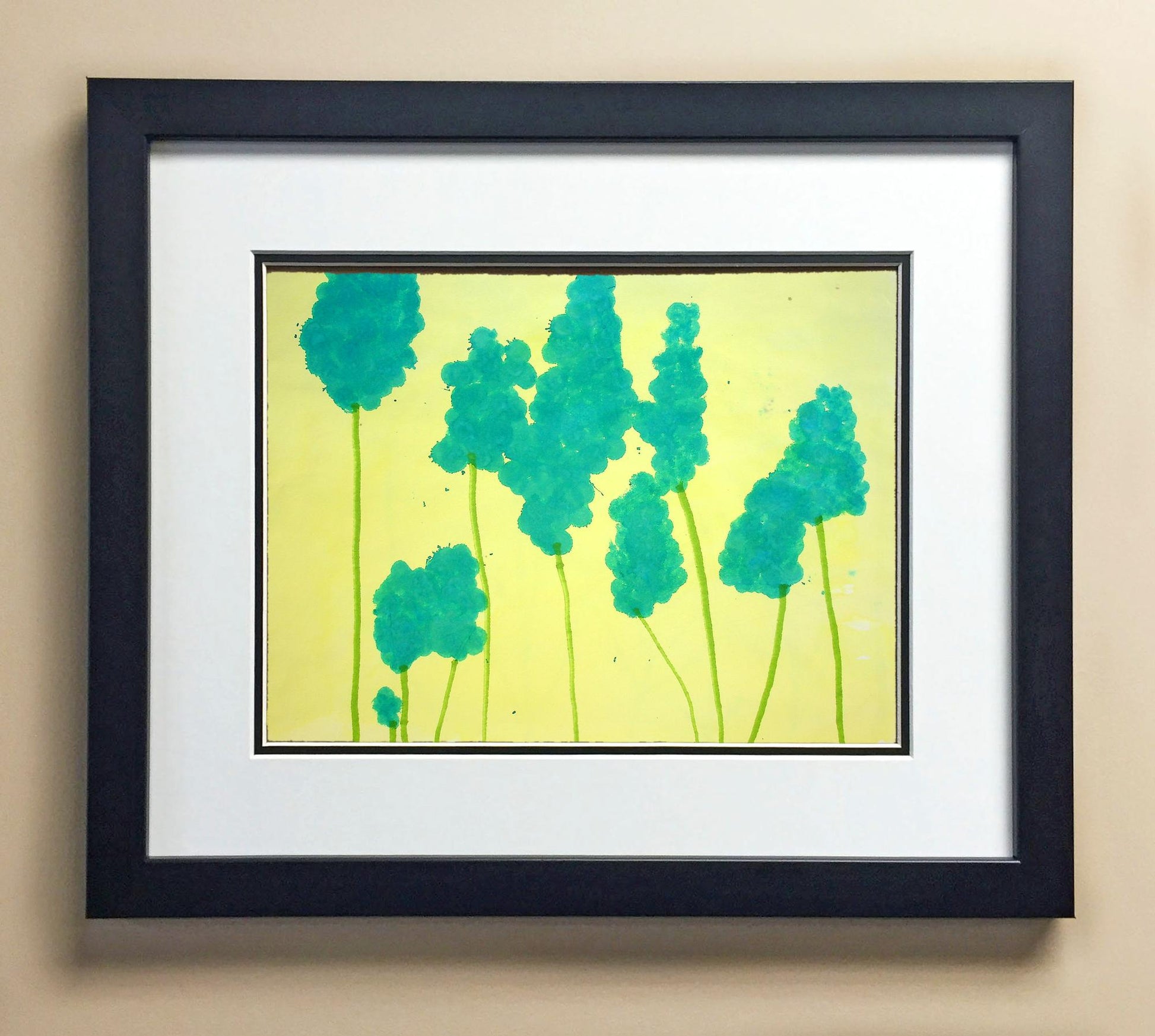 Included with the purchase is the Students Artwork, Frame, double matboard, shatter proof plexiglass, and a ready to hang backerboard with turnbuttons