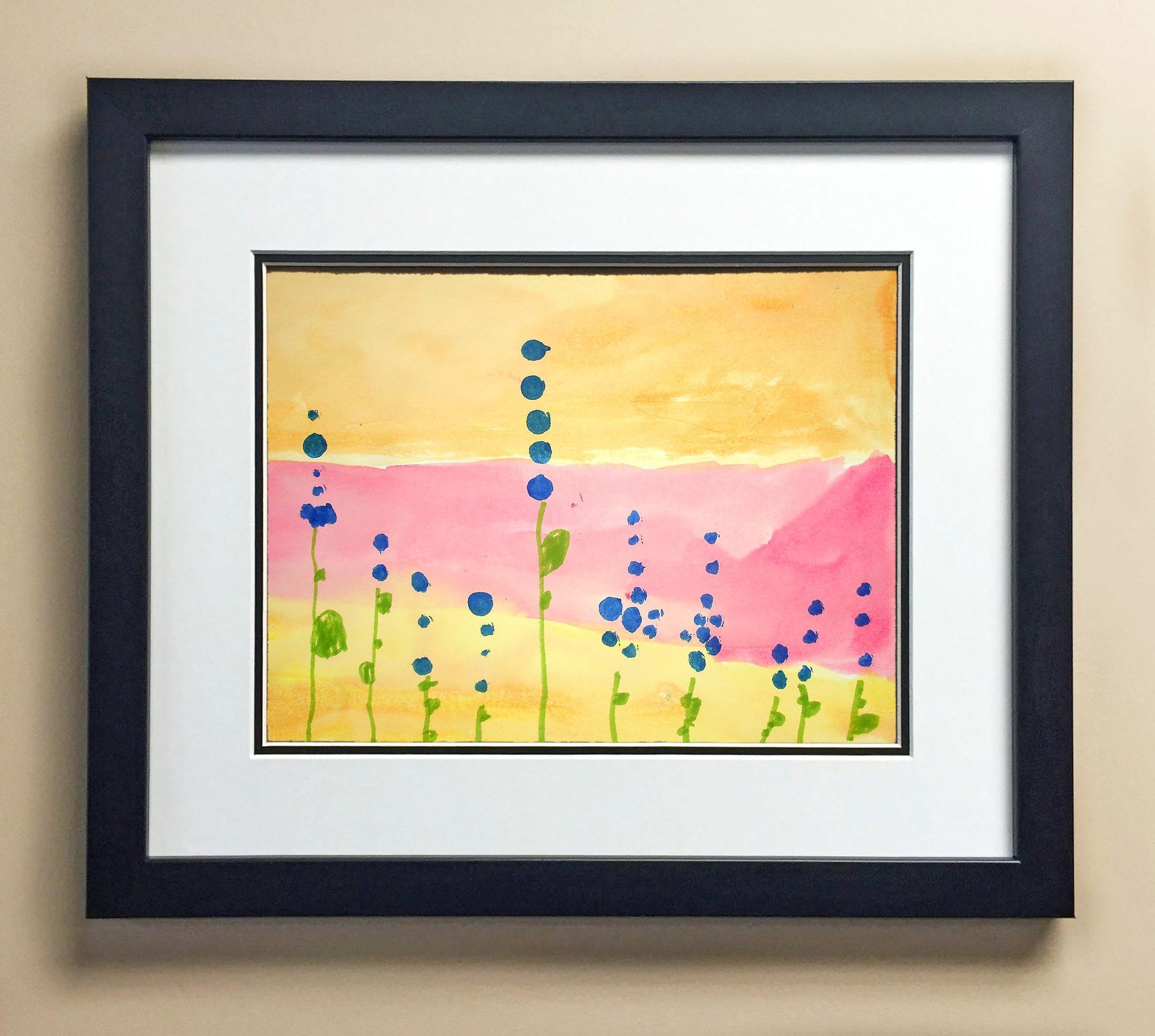 Included with the purchase is the Students Artwork, Frame, double matboard, shatter proof plexiglass, and a ready to hang backerboard with turnbuttons