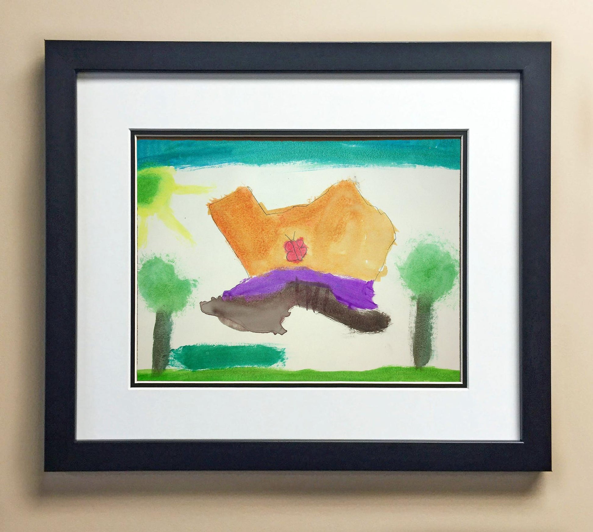 Included with the purchase is the Students Artwork, Frame, double matboard, shatter proof plexiglass, and a ready to hang backerboard with turnbuttons