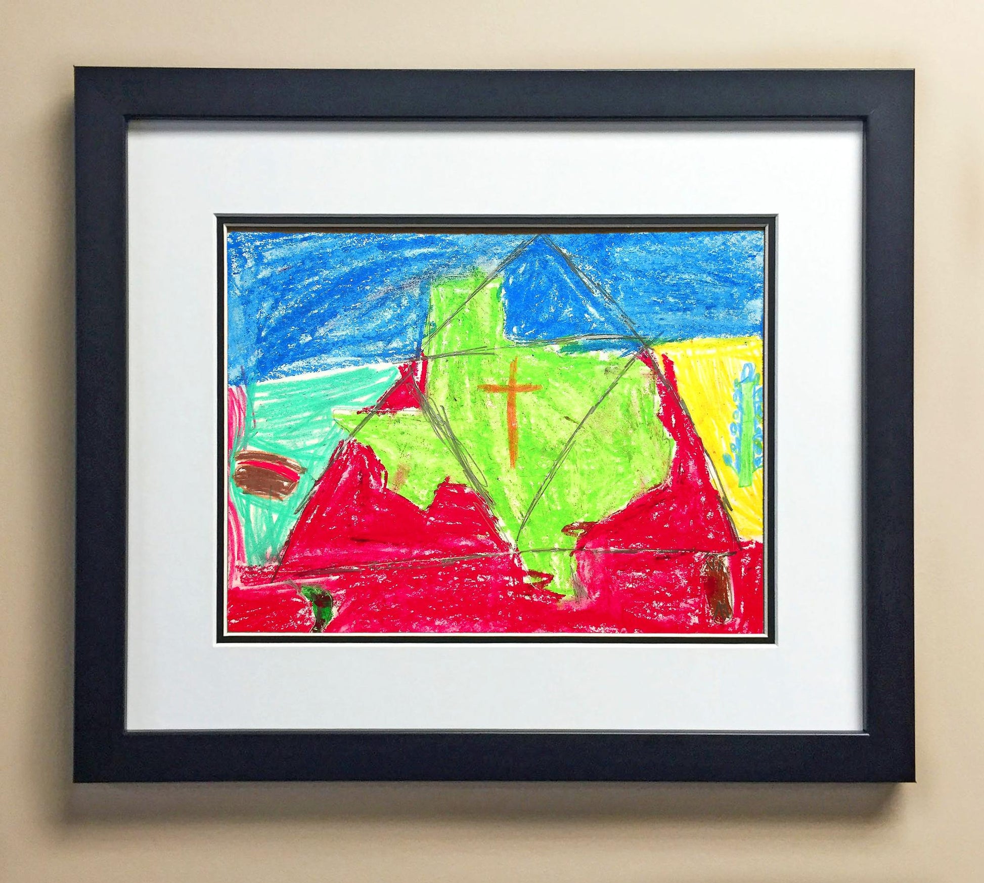 Included with the purchase is the Students Artwork, Frame, double matboard, shatter proof plexiglass, and a ready to hang backerboard with turnbuttons