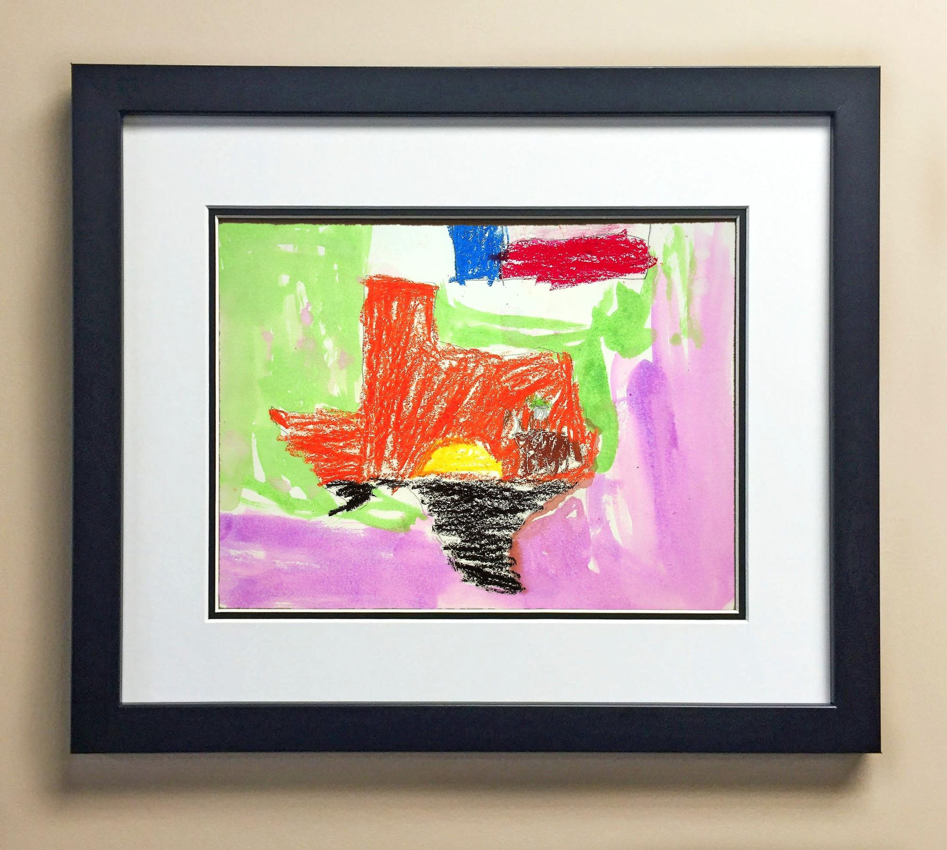 Included with the purchase is the Students Artwork, Frame, double matboard, shatter proof plexiglass, and a ready to hang backerboard with turnbuttons