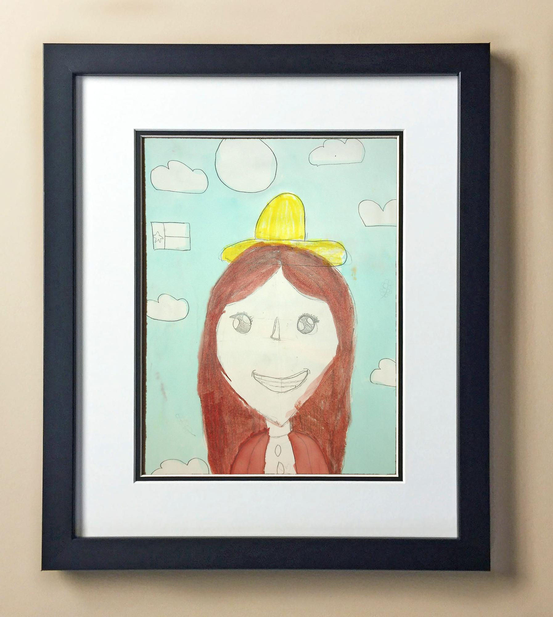 Included with the purchase is the Students Artwork, Frame, double matboard, shatter proof plexiglass, and a ready to hang backerboard with turnbuttons