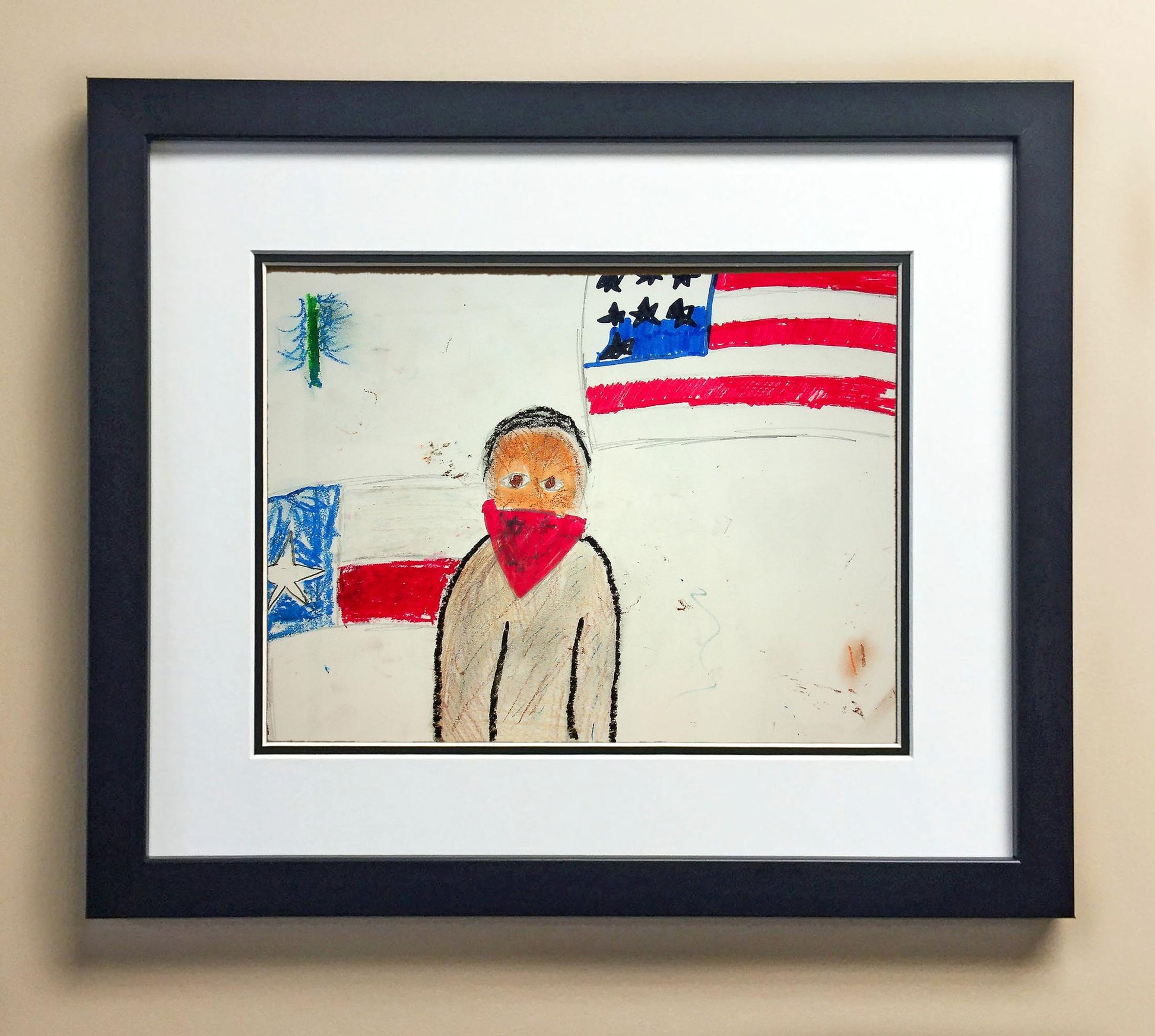 Included with the purchase is the Students Artwork, Frame, double matboard, shatter proof plexiglass, and a ready to hang backerboard with turnbuttons