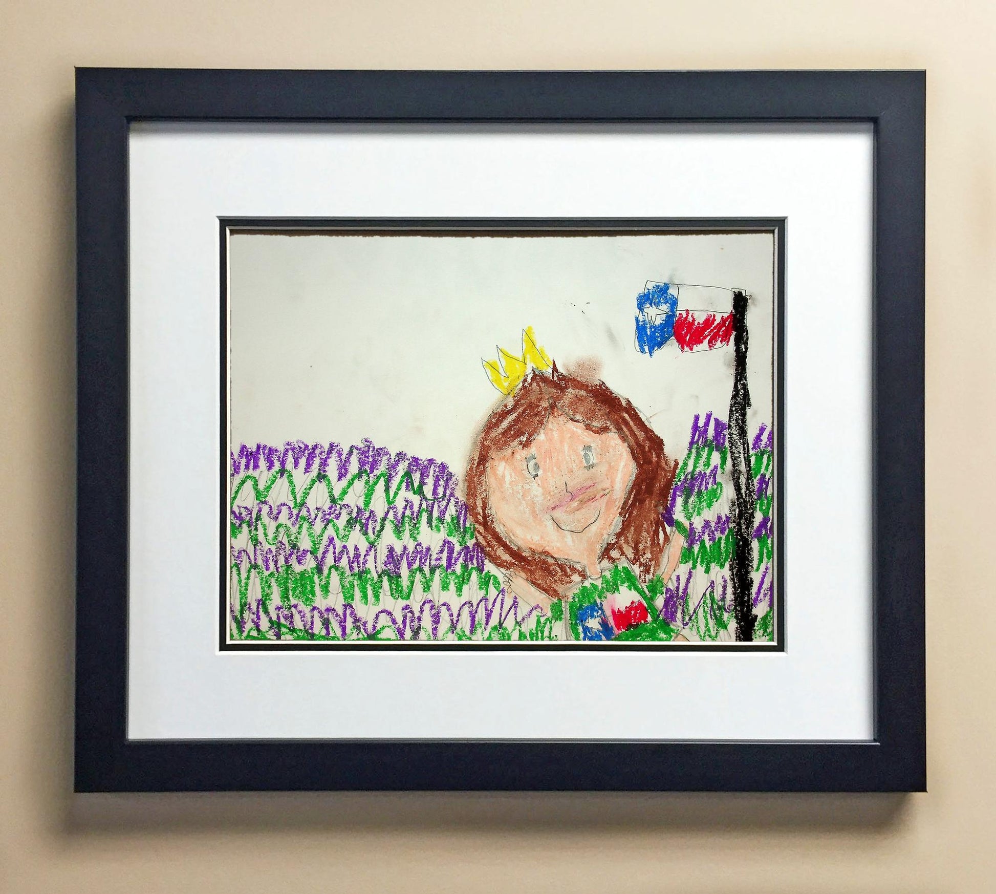 Included with the purchase is the Students Artwork, Frame, double matboard, shatter proof plexiglass, and a ready to hang backerboard with turnbuttons