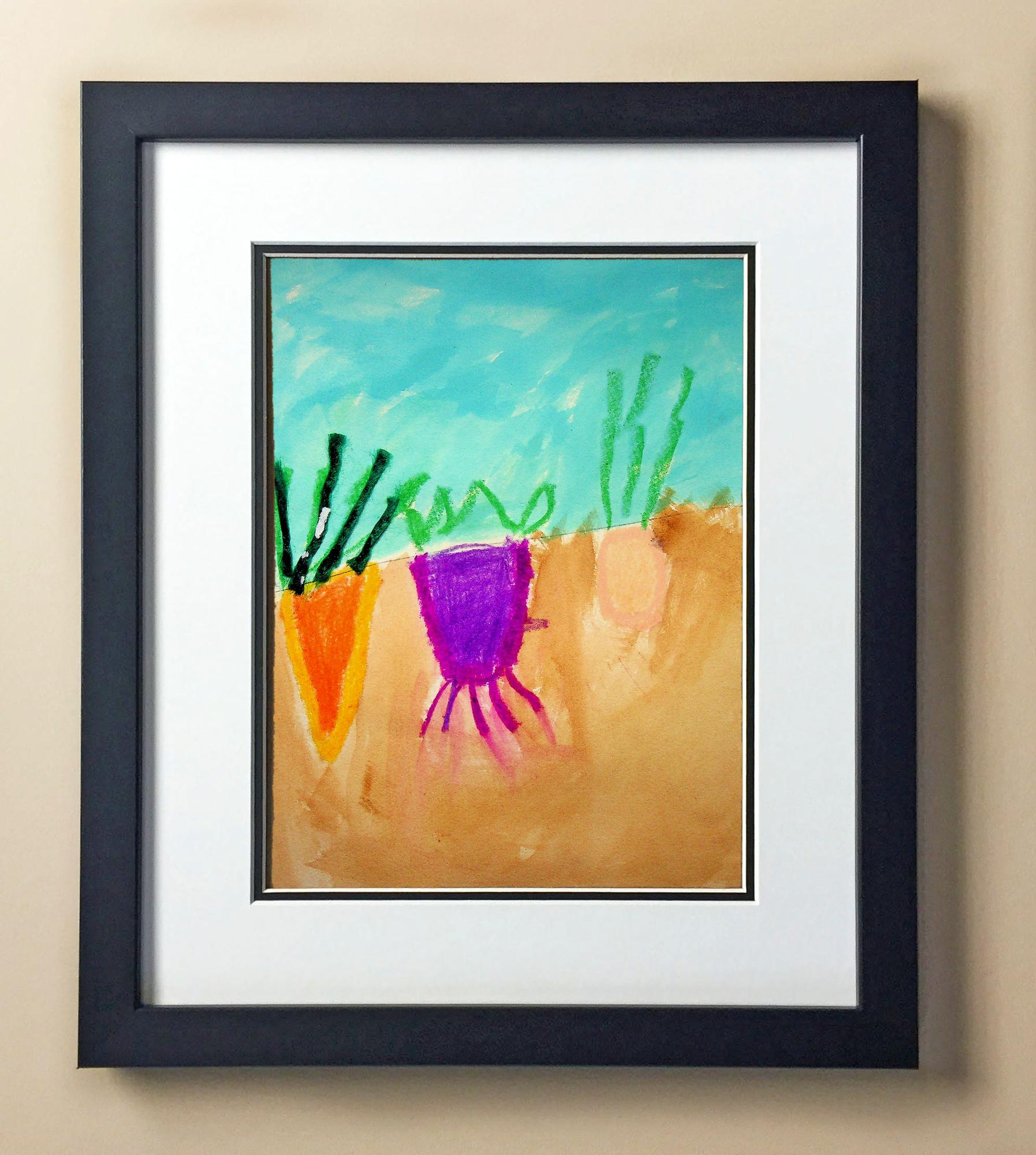 Included with the purchase is the Students Artwork, Frame, double matboard, shatter proof plexiglass, and a ready to hang backerboard with turnbuttons