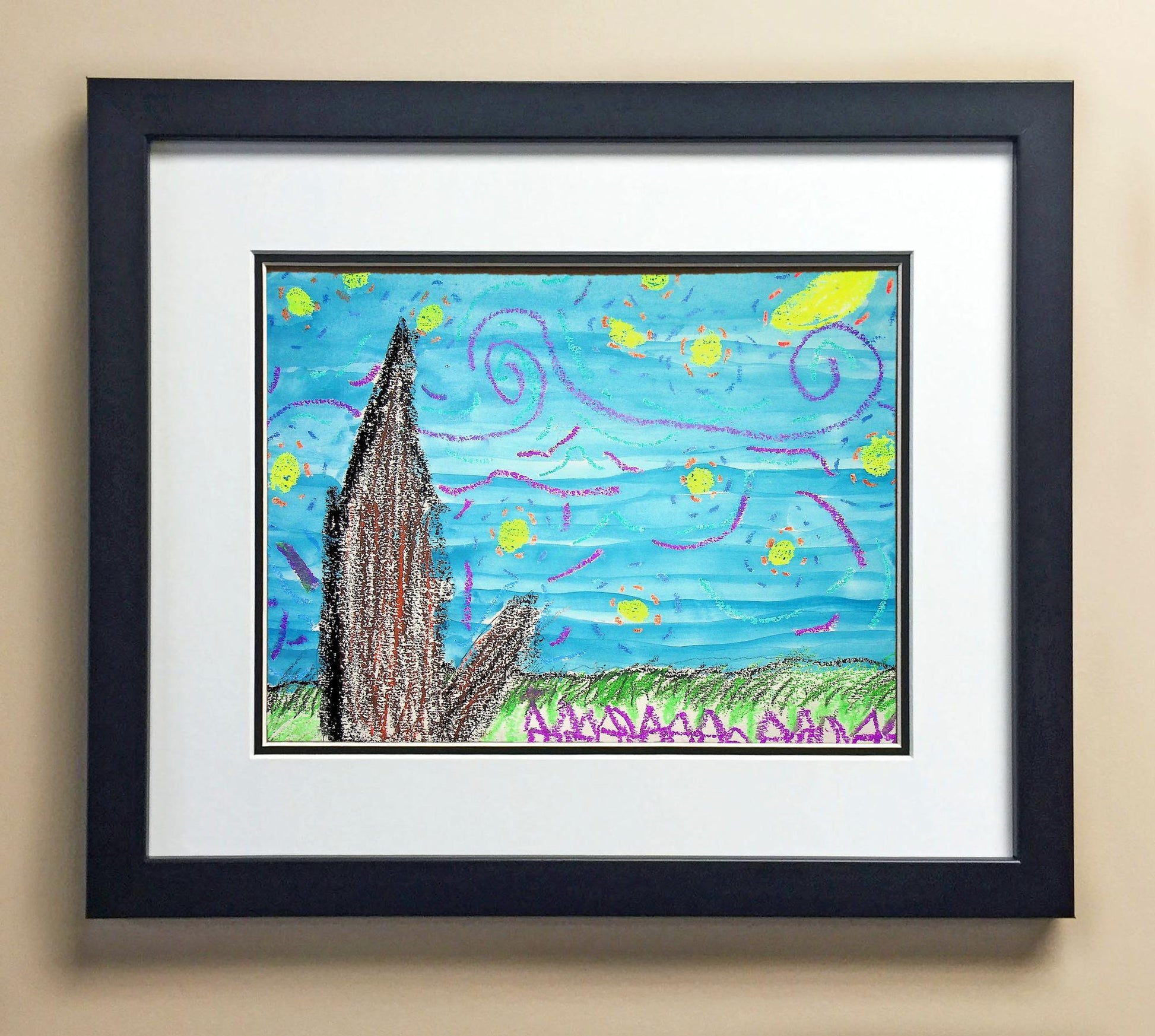 Included with the purchase is the Students Artwork, Frame, double matboard, shatter proof plexiglass, and a ready to hang backerboard with turnbuttons