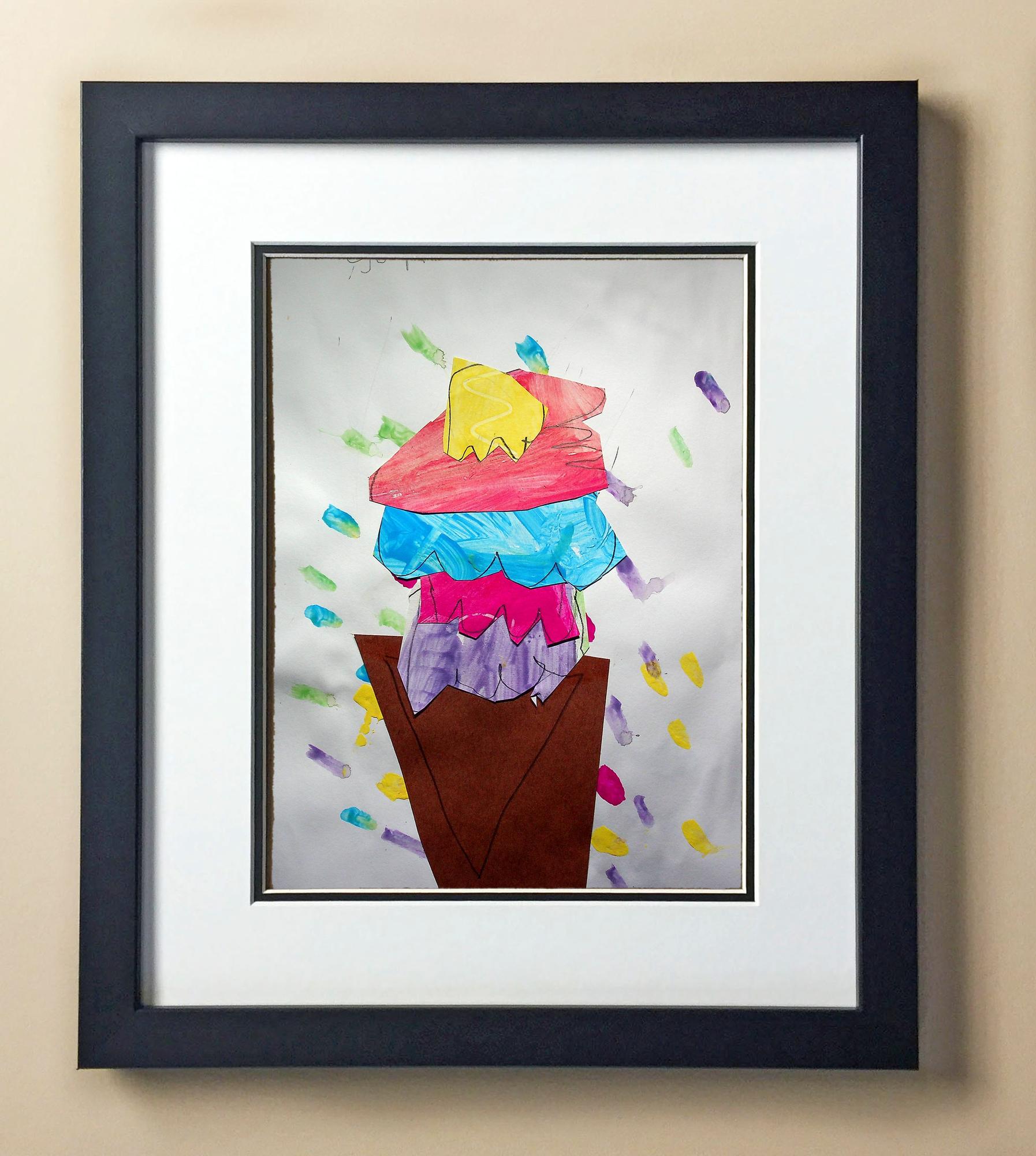Included with the purchase is the Students Artwork, Frame, double matboard, shatter proof plexiglass, and a ready to hang backerboard with turnbuttons