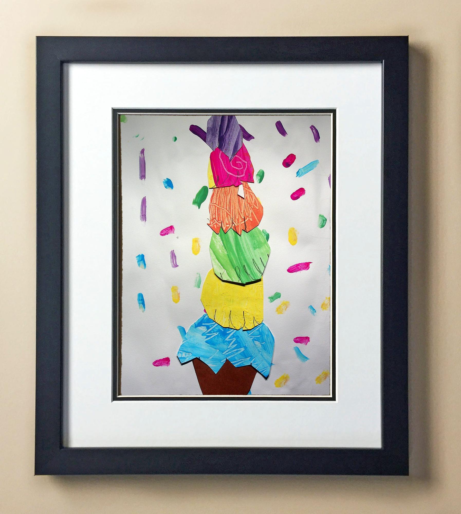 Included with the purchase is the Students Artwork, Frame, double matboard, shatter proof plexiglass, and a ready to hang backerboard with turnbuttons