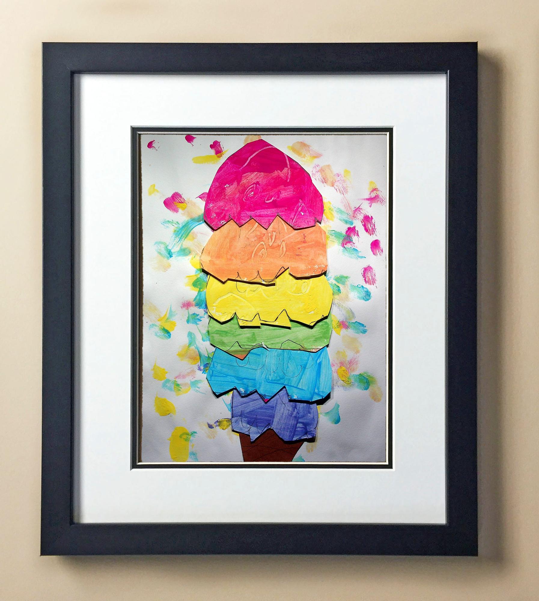 Included with the purchase is the Students Artwork, Frame, double matboard, shatter proof plexiglass, and a ready to hang backerboard with turnbuttons