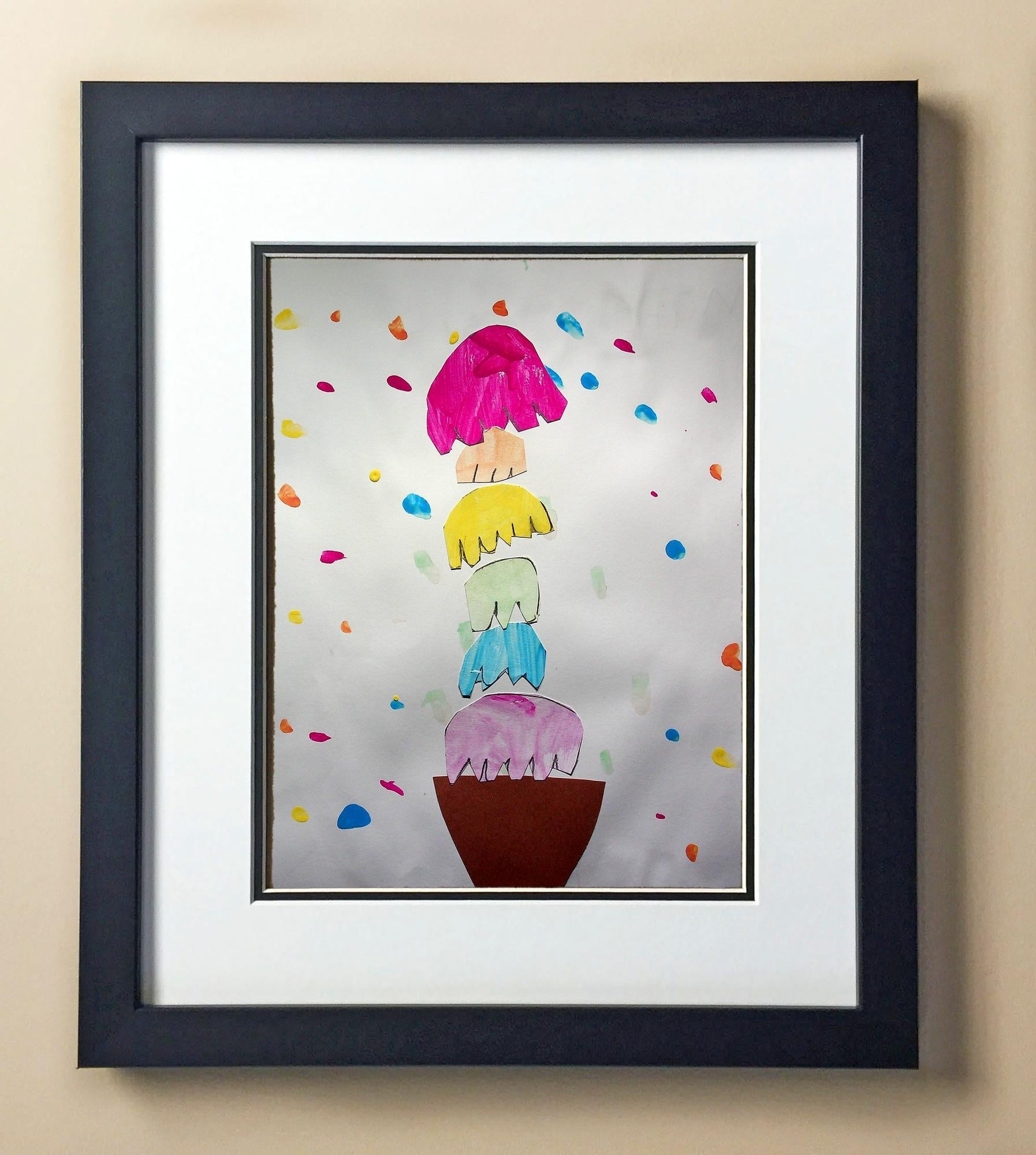 Included with the purchase is the Students Artwork, Frame, double matboard, shatter proof plexiglass, and a ready to hang backerboard with turnbuttons