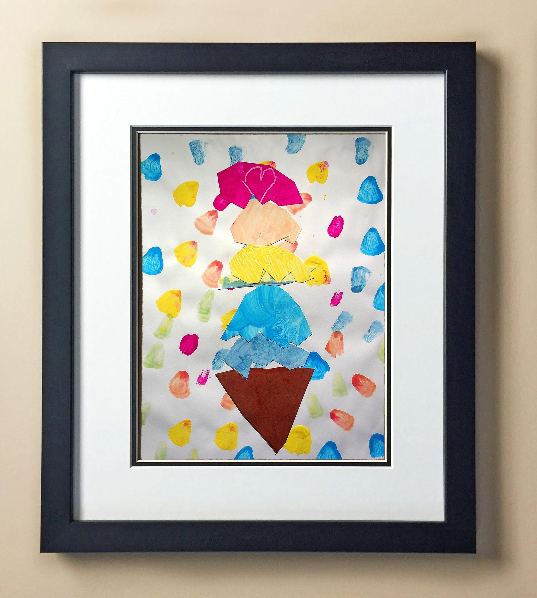 Included with the purchase is the Students Artwork, Frame, double matboard, shatter proof plexiglass, and a ready to hang backerboard with turnbuttons