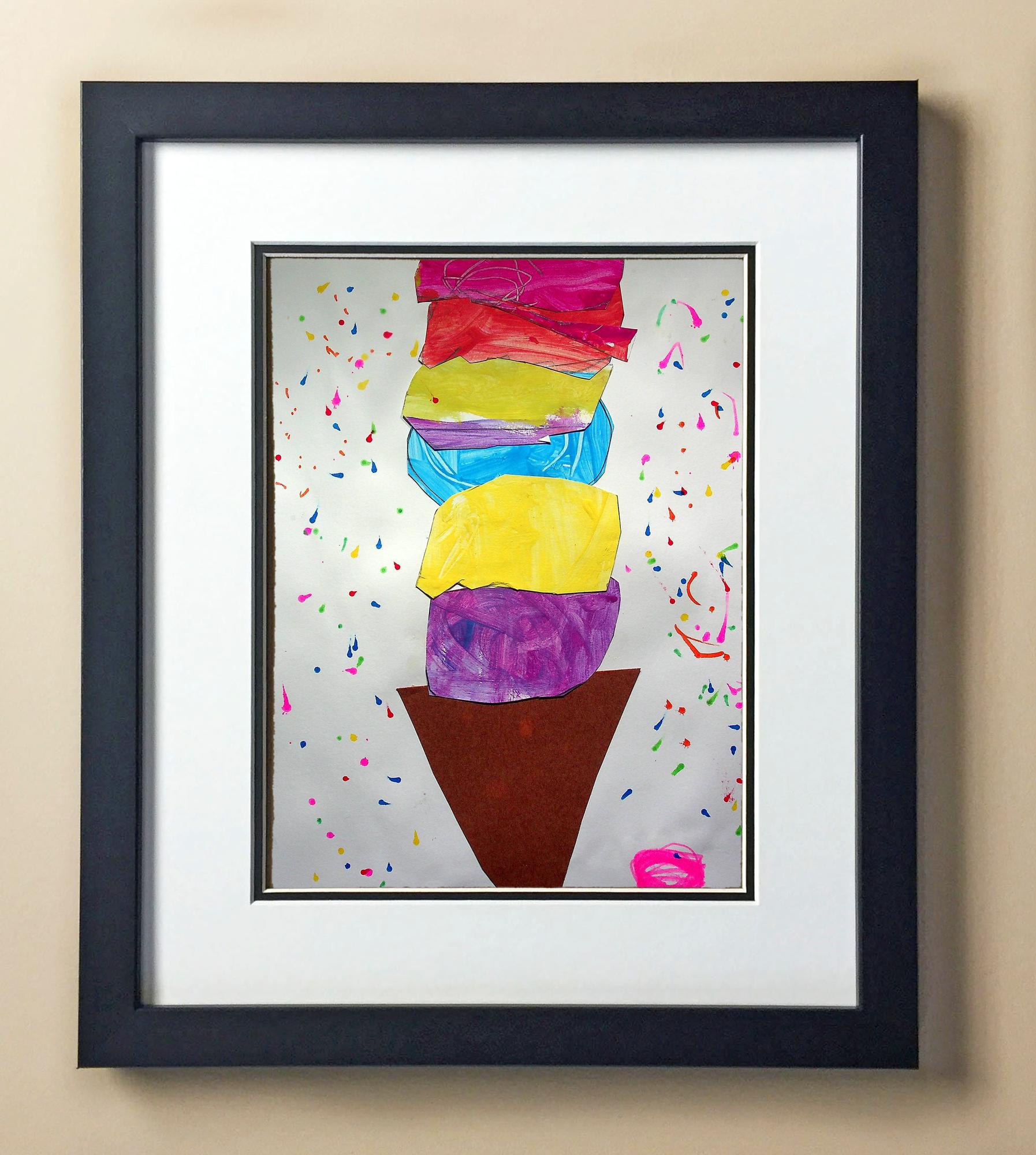 Included with the purchase is the Students Artwork, Frame, double matboard, shatter proof plexiglass, and a ready to hang backerboard with turnbuttons