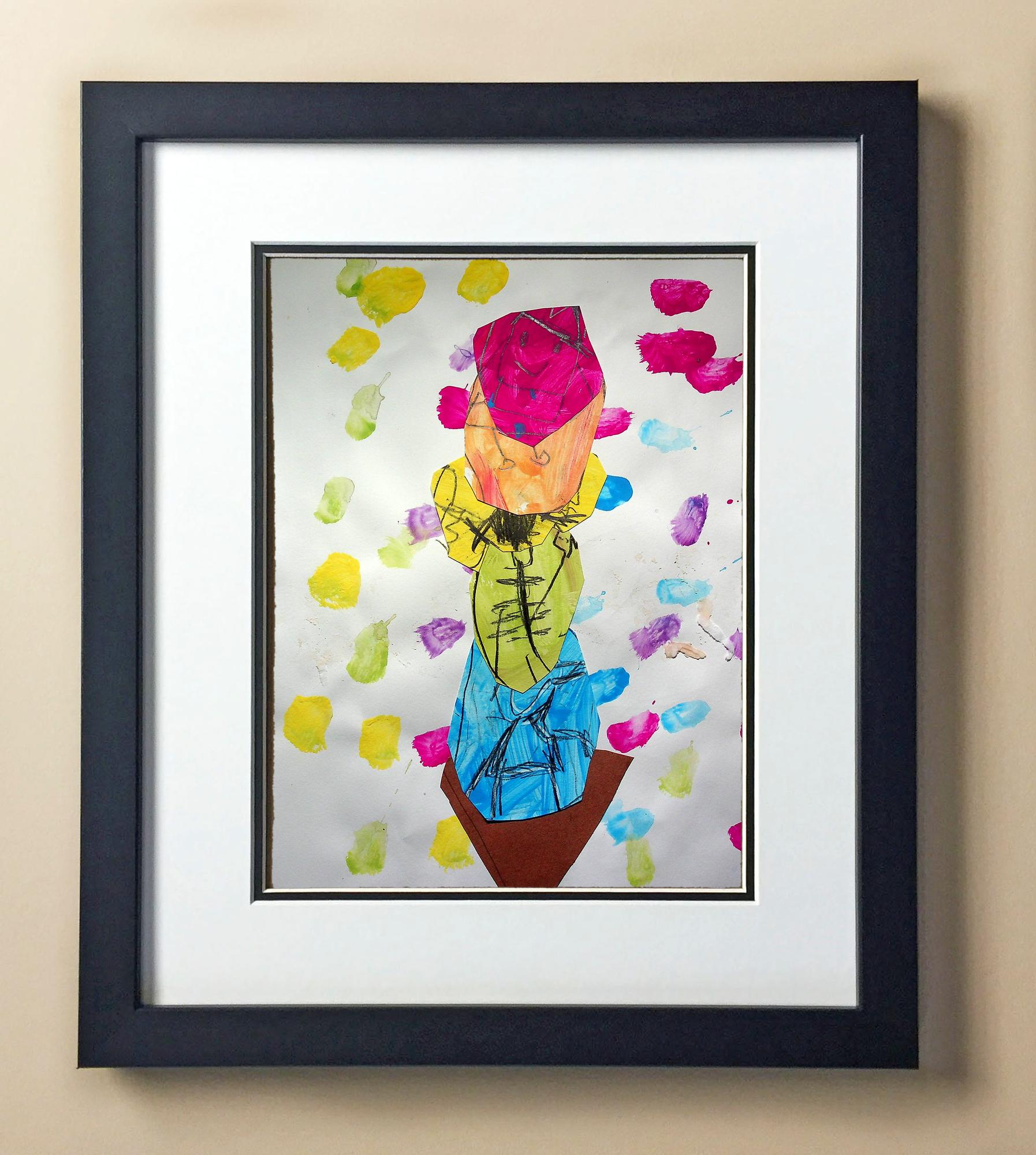Included with the purchase is the Students Artwork, Frame, double matboard, shatter proof plexiglass, and a ready to hang backerboard with turnbuttons