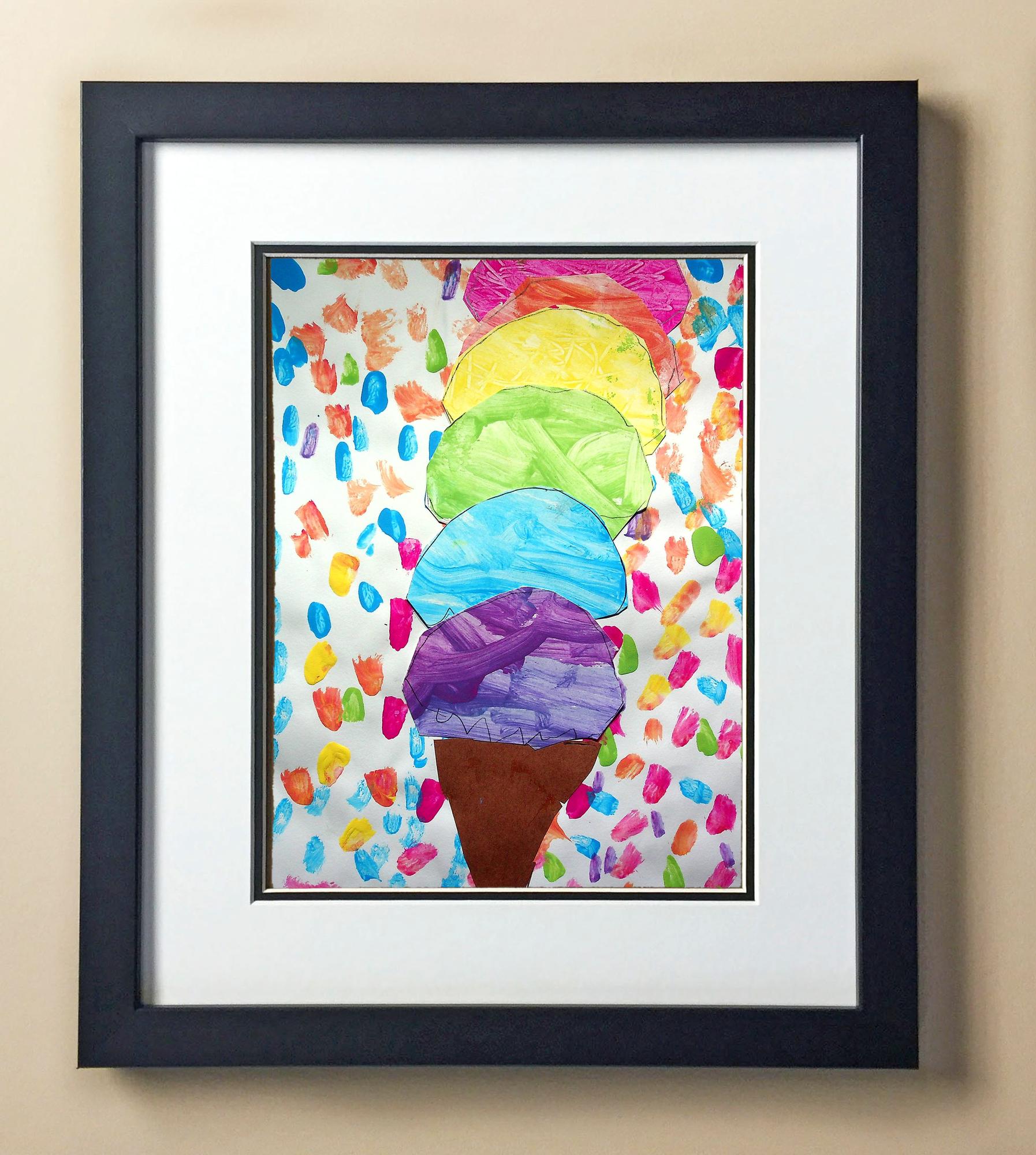 Included with the purchase is the Students Artwork, Frame, double matboard, shatter proof plexiglass, and a ready to hang backerboard with turnbuttons