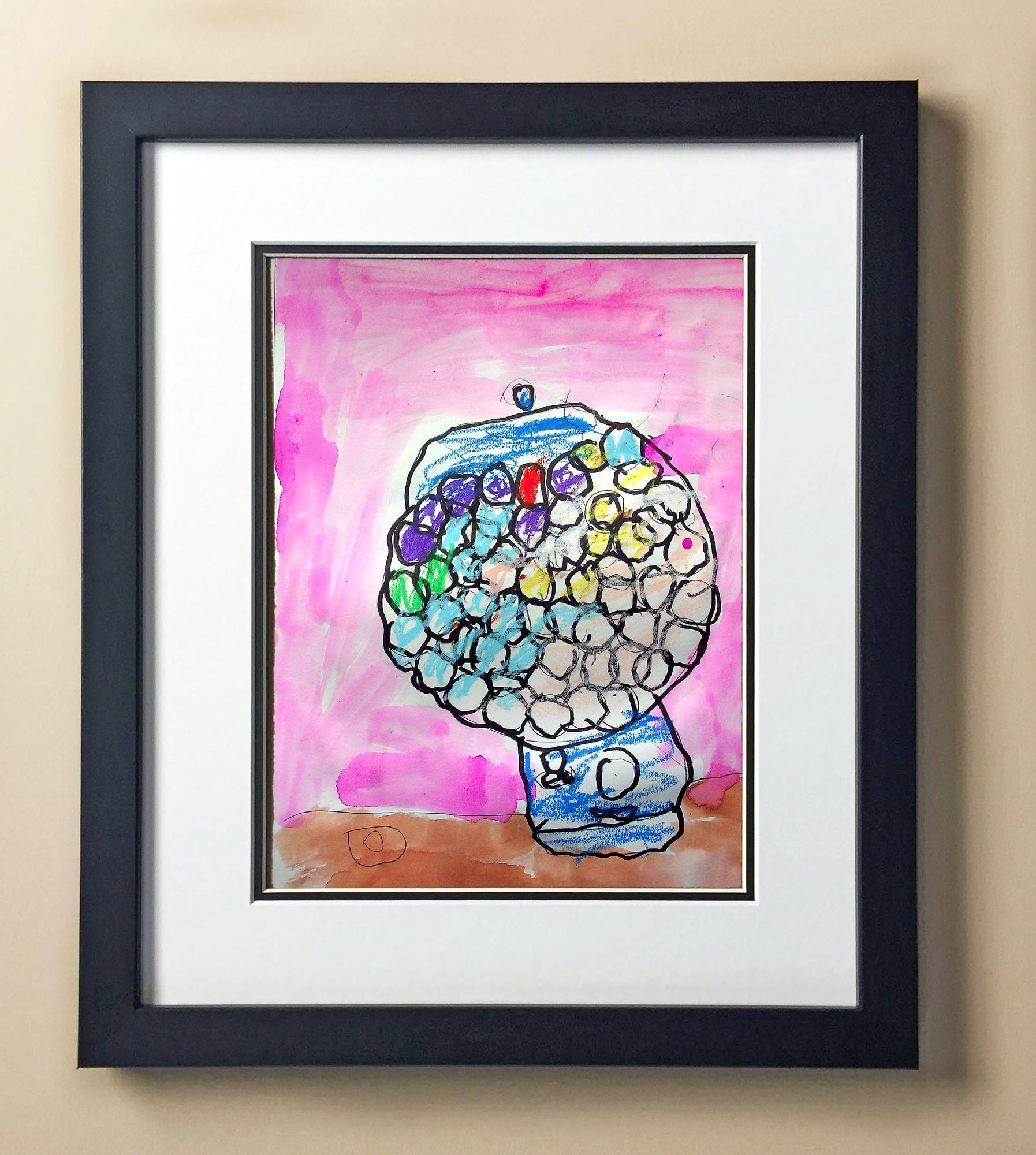 Included with the purchase is the Students Artwork, Frame, double matboard, shatter proof plexiglass, and a ready to hang backerboard with turnbuttons