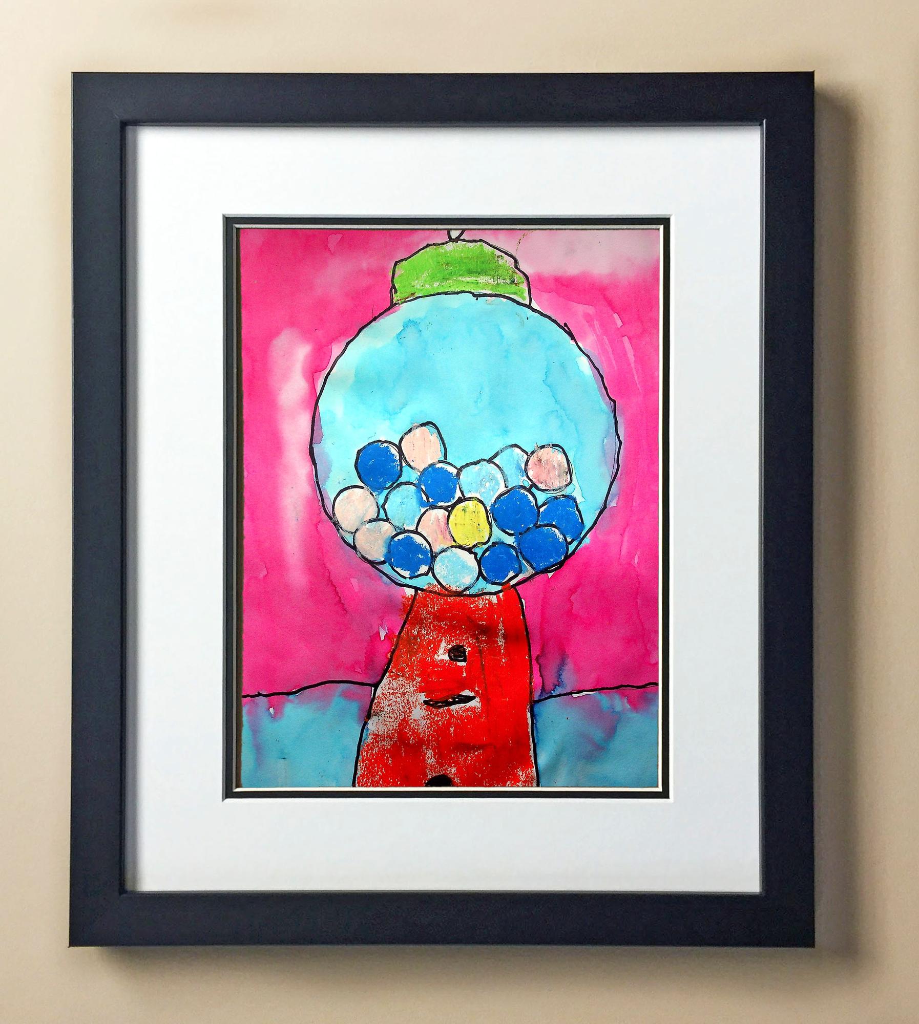 Included with the purchase is the Students Artwork, Frame, double matboard, shatter proof plexiglass, and a ready to hang backerboard with turnbuttons