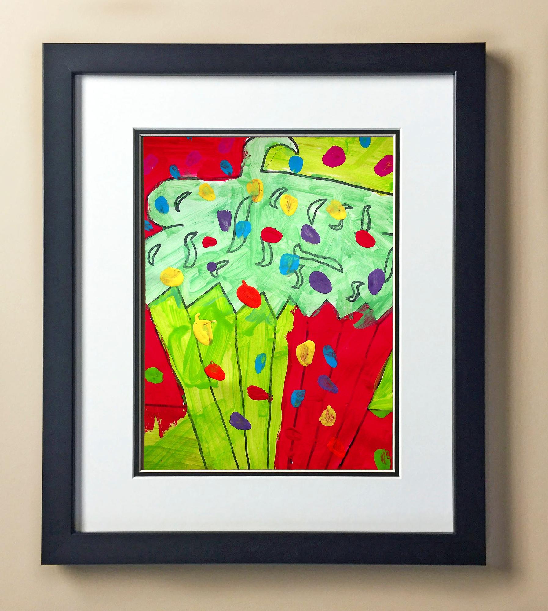 Included with the purchase is the Students Artwork, Frame, double matboard, shatter proof plexiglass, and a ready to hang backerboard with turnbuttons
