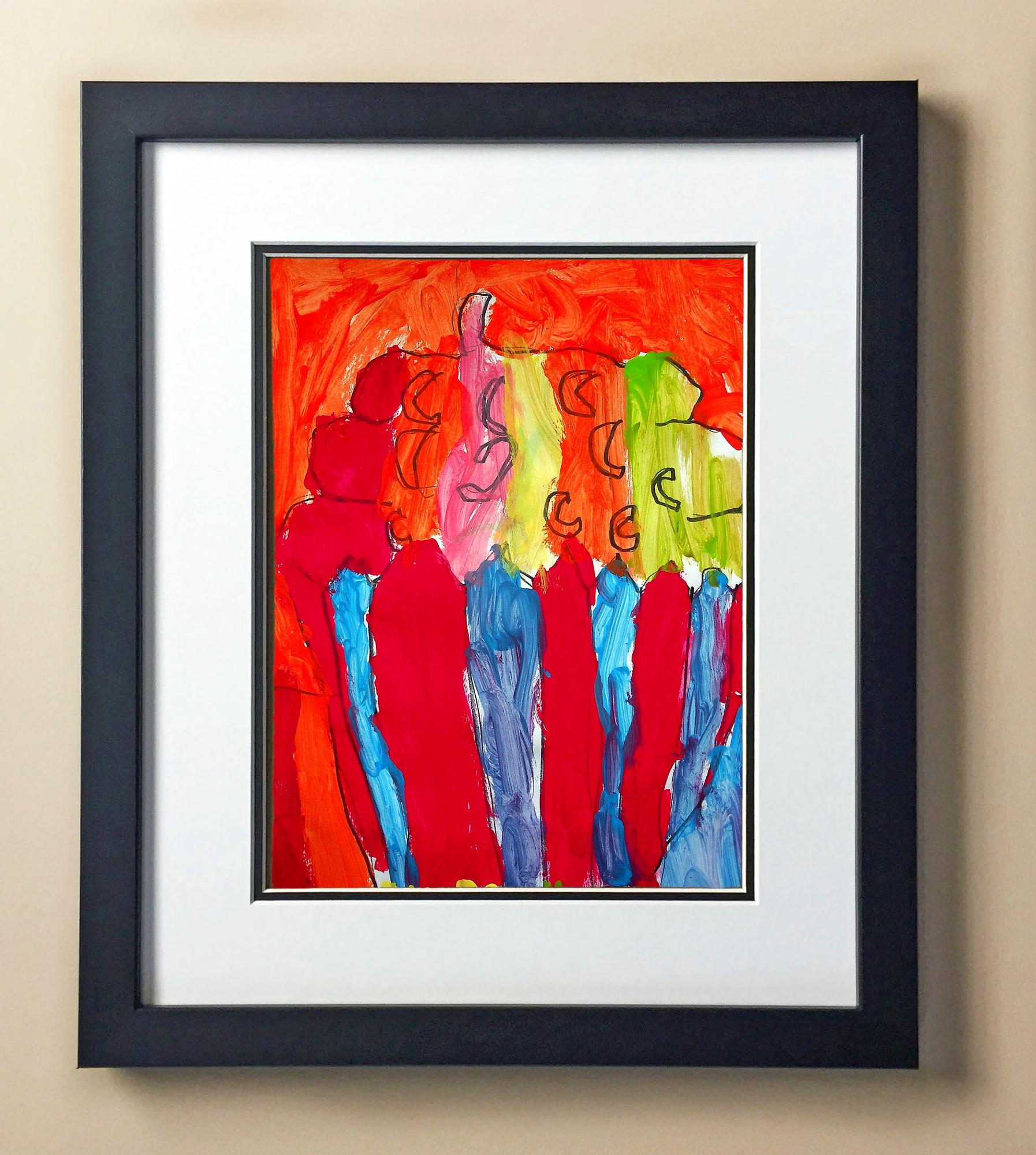 Included with the purchase is the Students Artwork, Frame, double matboard, shatter proof plexiglass, and a ready to hang backerboard with turnbuttons