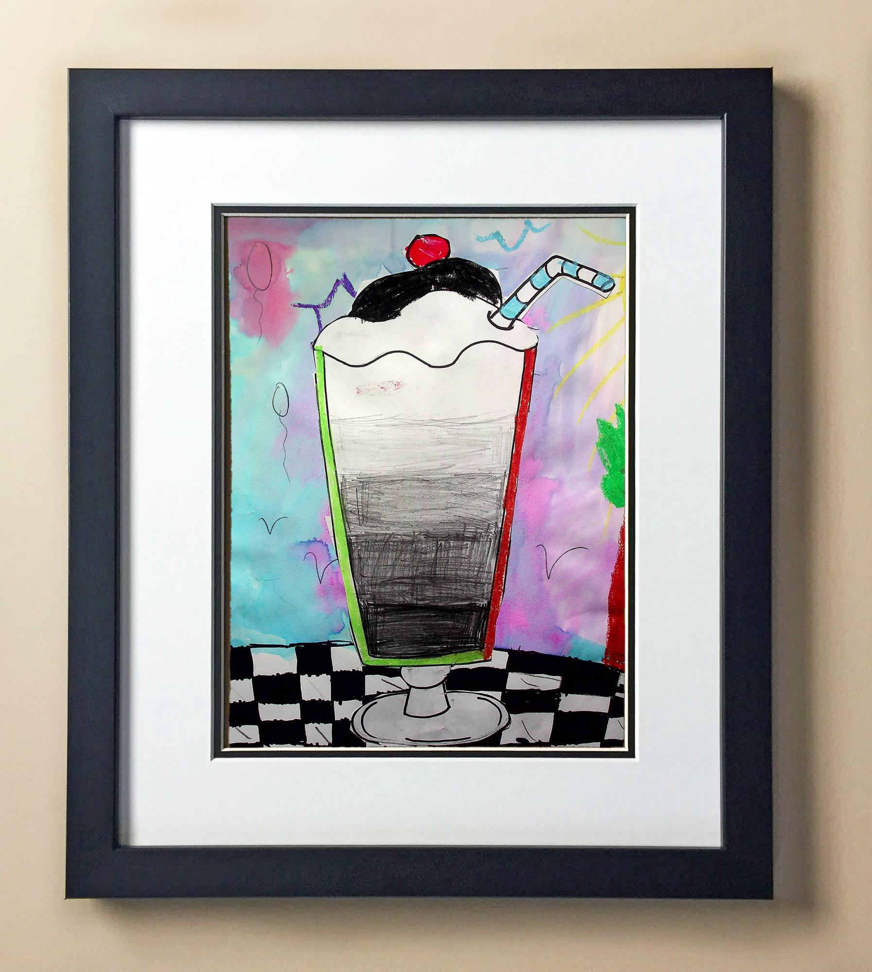 Included with the purchase is the Students Artwork, Frame, double matboard, shatter proof plexiglass, and a ready to hang backerboard with turnbuttons