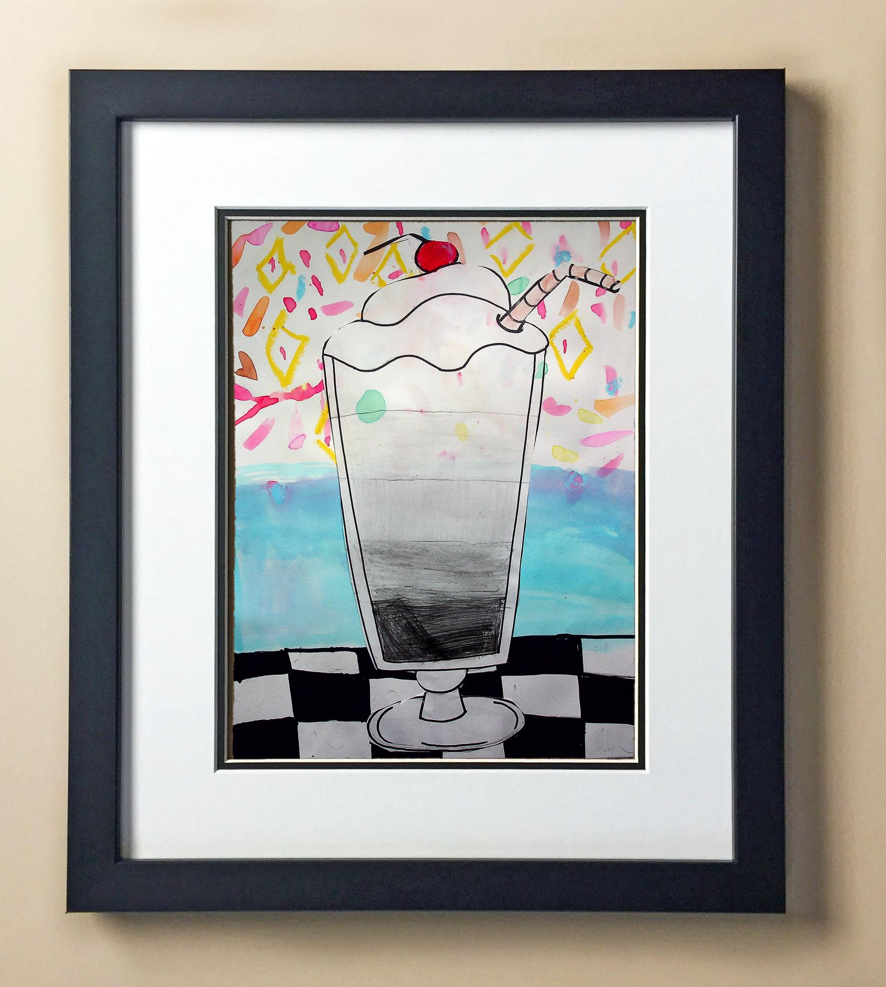 Included with the purchase is the Students Artwork, Frame, double matboard, shatter proof plexiglass, and a ready to hang backerboard with turnbuttons