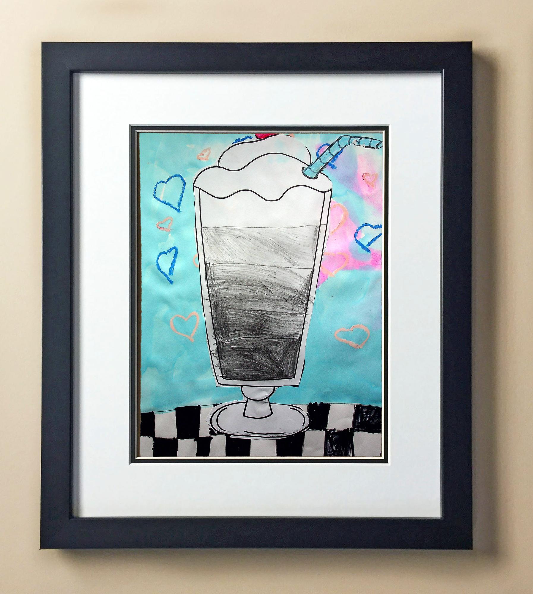 Included with the purchase is the Students Artwork, Frame, double matboard, shatter proof plexiglass, and a ready to hang backerboard with turnbuttons