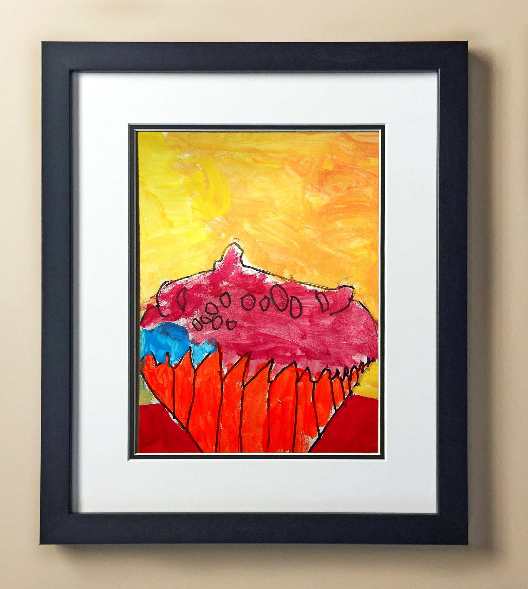 Included with the purchase is the Students Artwork, Frame, double matboard, shatter proof plexiglass, and a ready to hang backerboard with turnbuttons