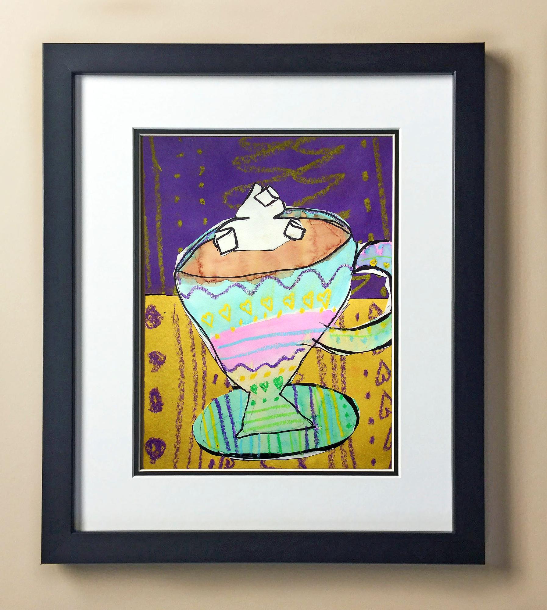 Included with the purchase is the Students Artwork, Frame, double matboard, shatter proof plexiglass, and a ready to hang backerboard with turnbuttons