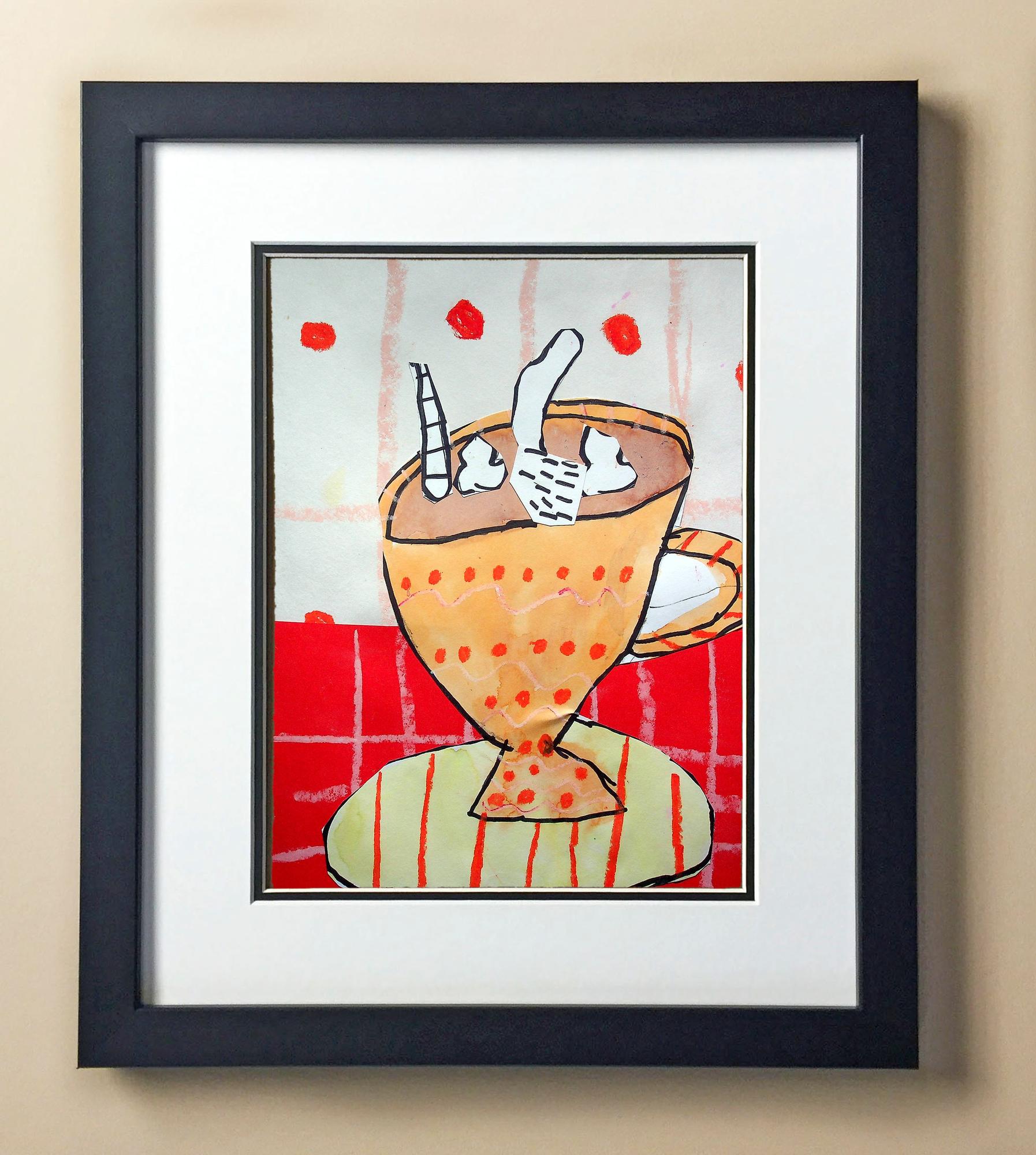 Included with the purchase is the Students Artwork, Frame, double matboard, shatter proof plexiglass, and a ready to hang backerboard with turnbuttons