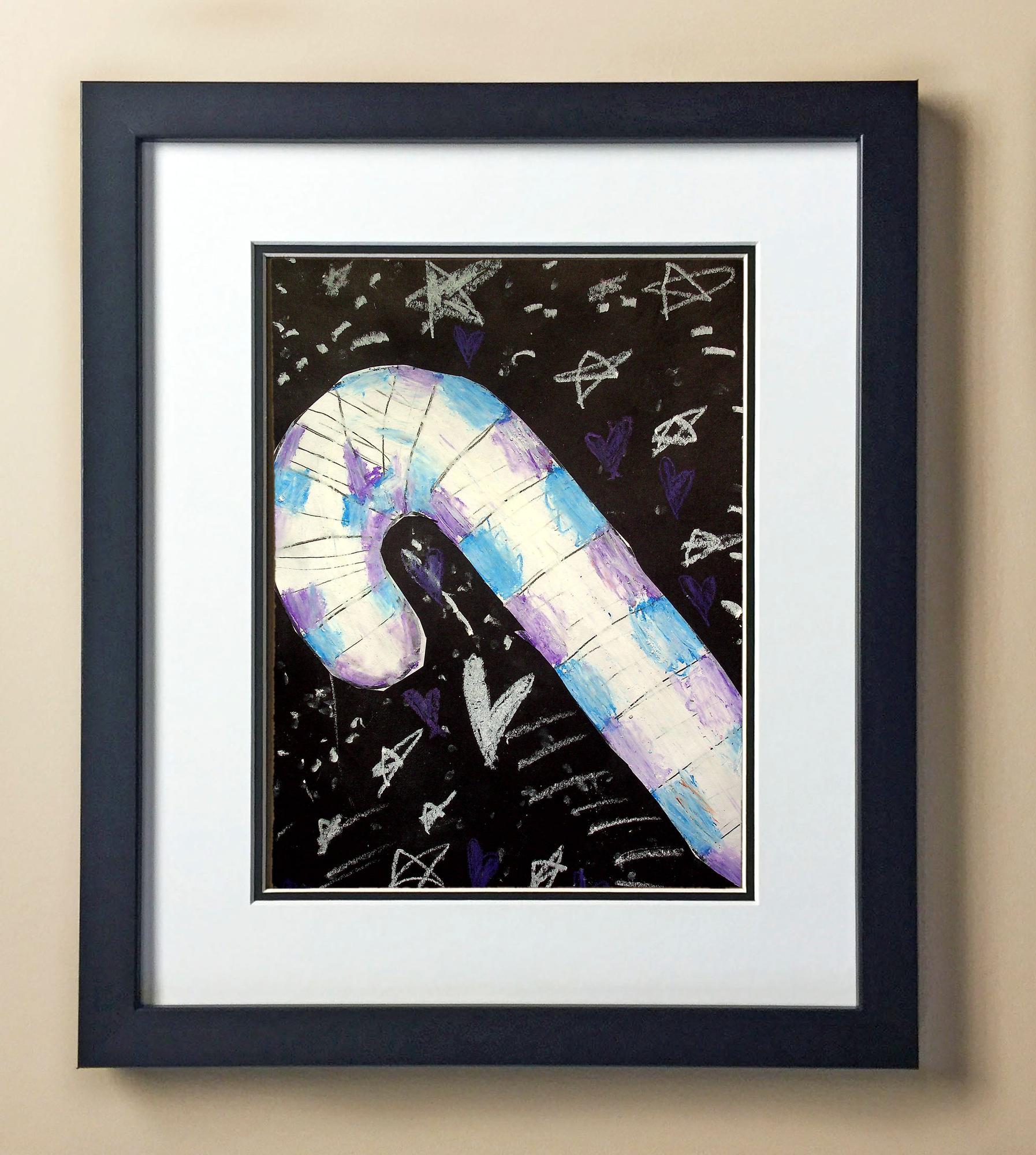 Included with the purchase is the Students Artwork, Frame, double matboard, shatter proof plexiglass, and a ready to hang backerboard with turnbuttons