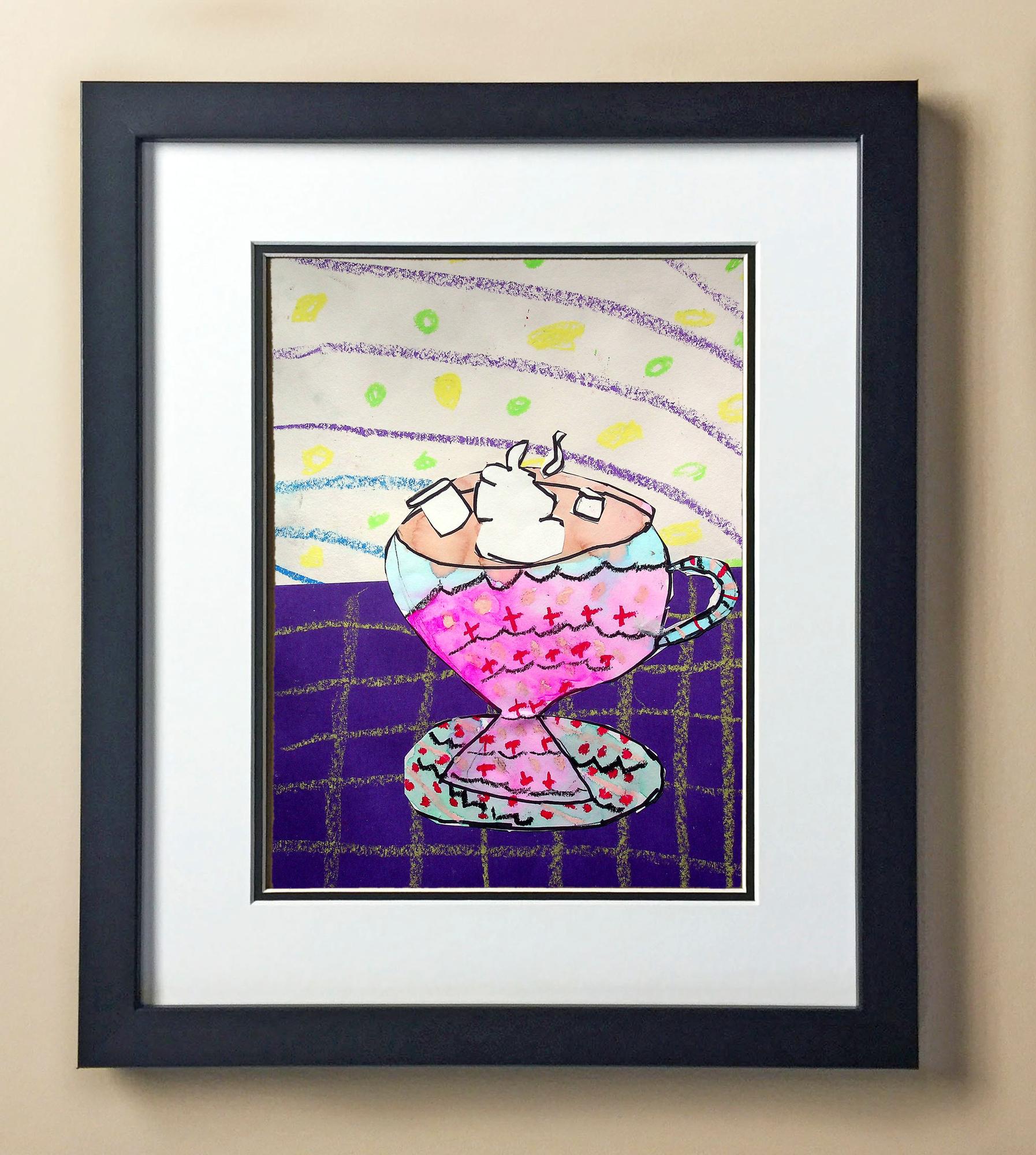 Included with the purchase is the Students Artwork, Frame, double matboard, shatter proof plexiglass, and a ready to hang backerboard with turnbuttons
