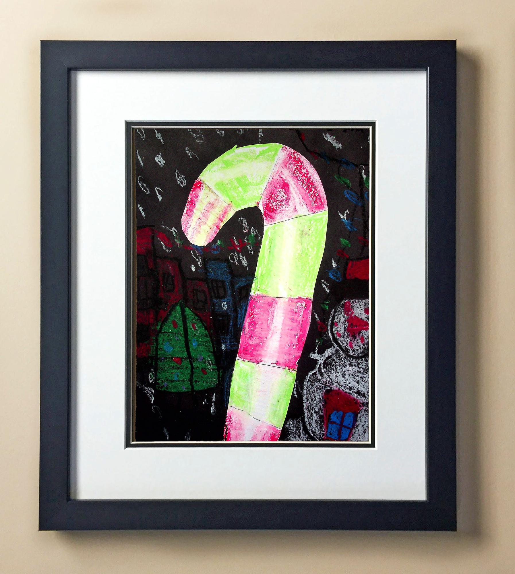 Included with the purchase is the Students Artwork, Frame, double matboard, shatter proof plexiglass, and a ready to hang backerboard with turnbuttons