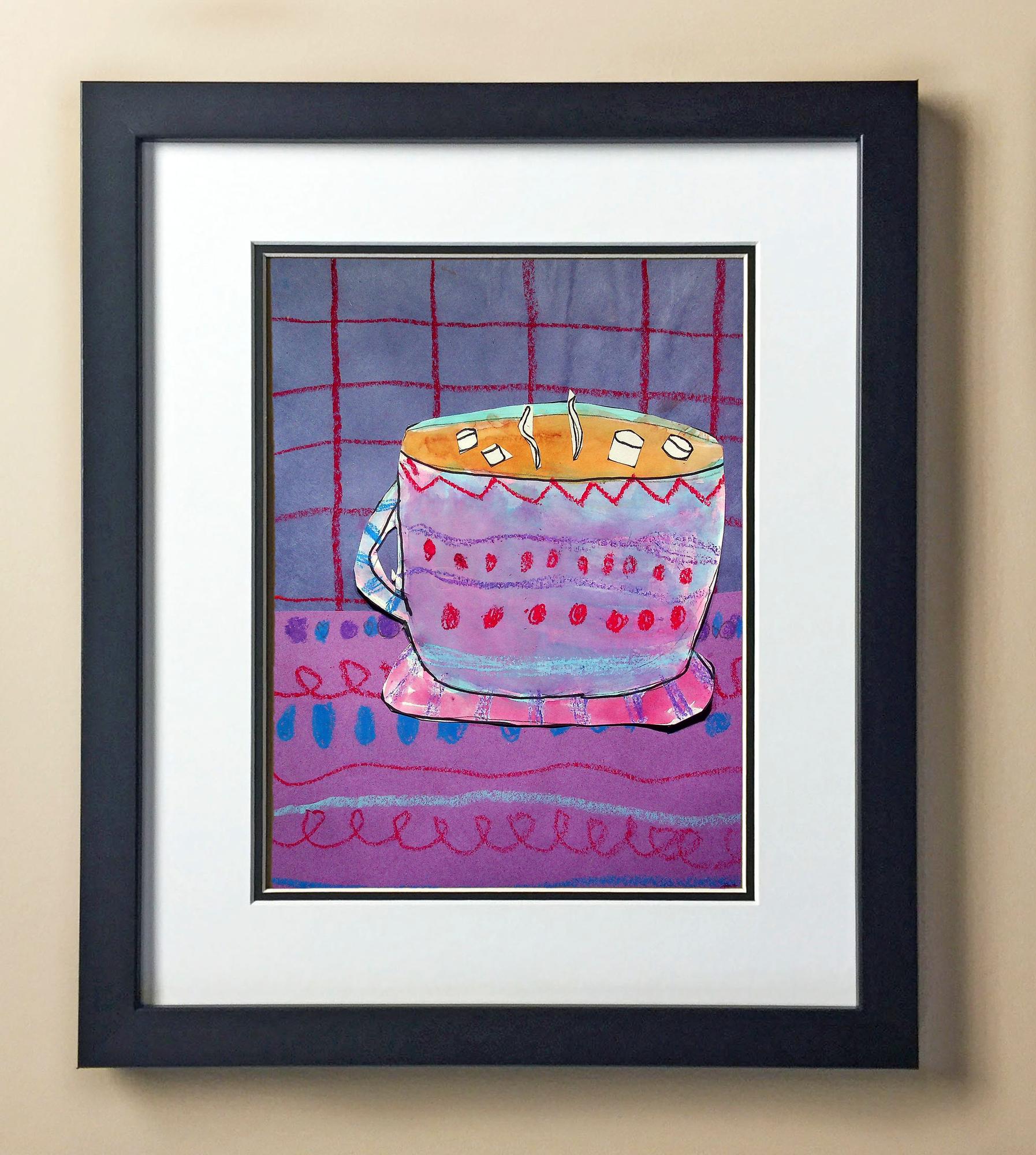 Included with the purchase is the Students Artwork, Frame, double matboard, shatter proof plexiglass, and a ready to hang backerboard with turnbuttons