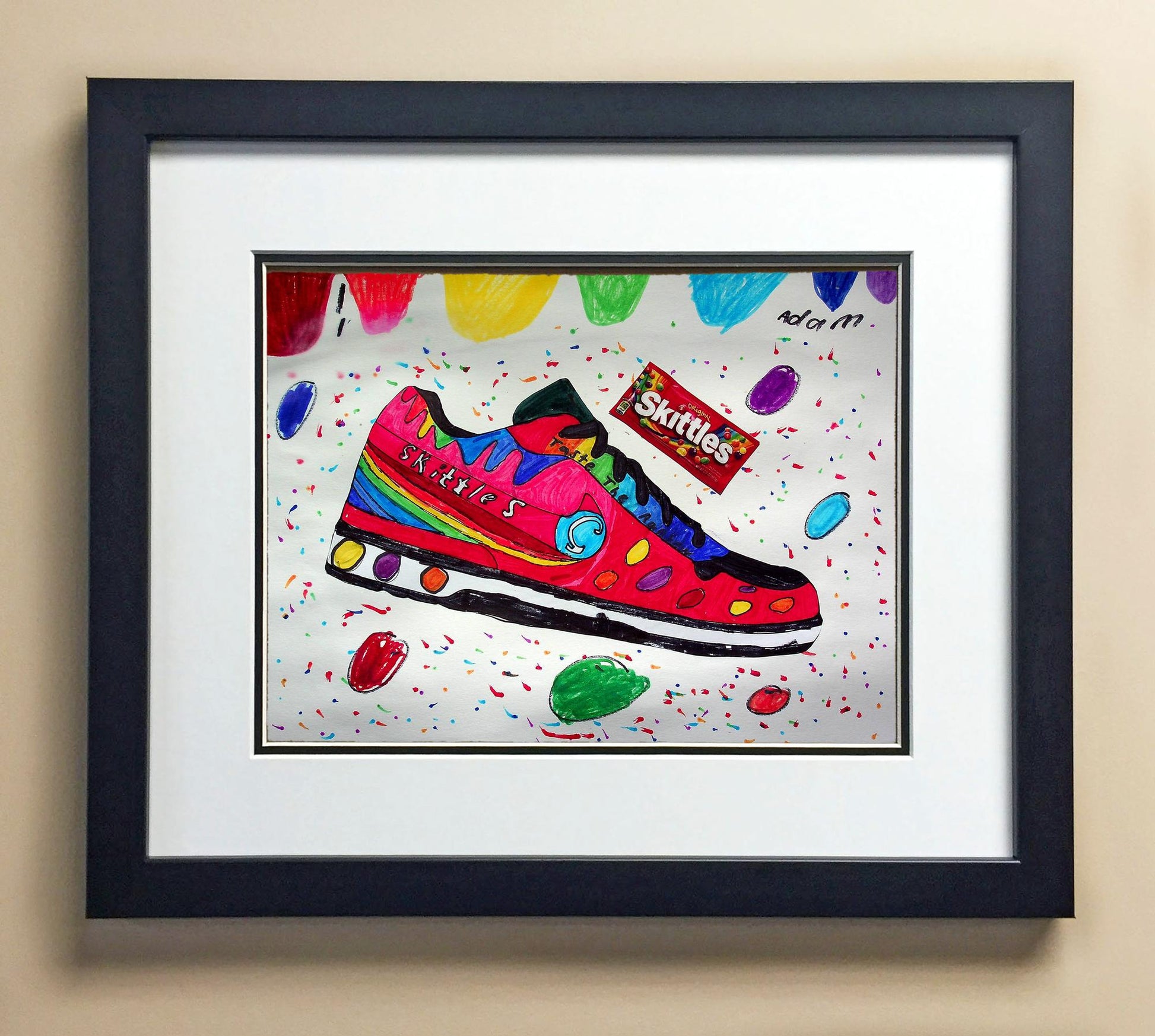 Included with the purchase is the Students Artwork, Frame, double matboard, shatter proof plexiglass, and a ready to hang backerboard with turnbuttons