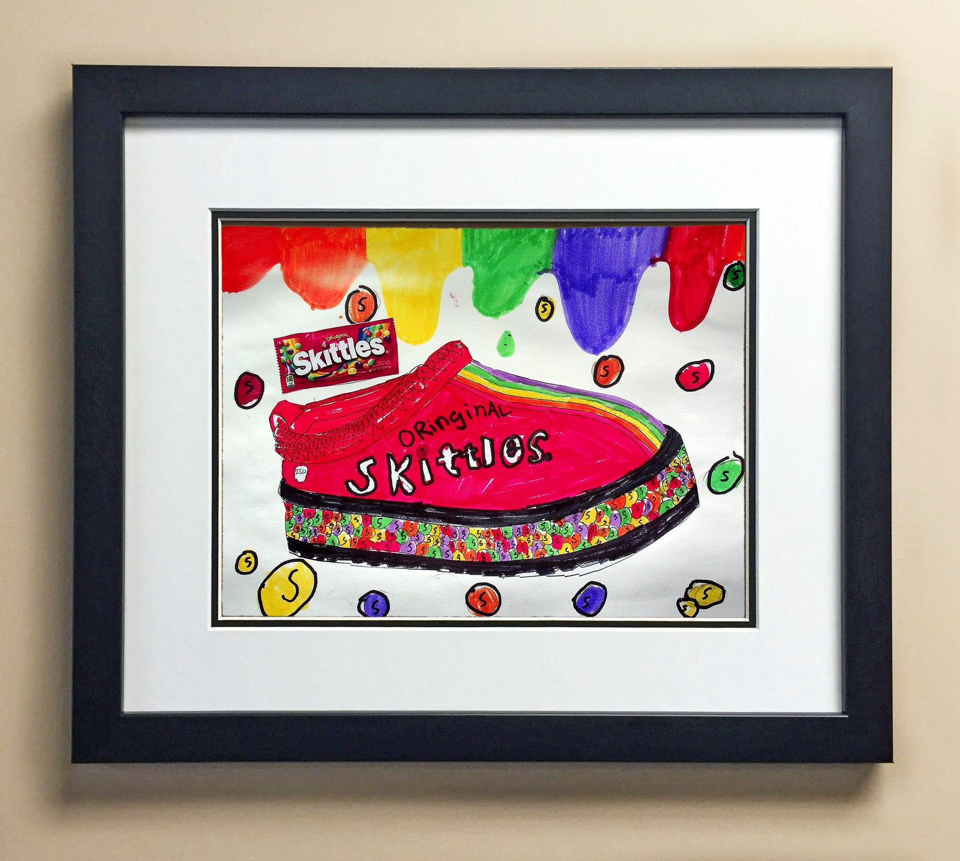 Included with the purchase is the Students Artwork, Frame, double matboard, shatter proof plexiglass, and a ready to hang backerboard with turnbuttons