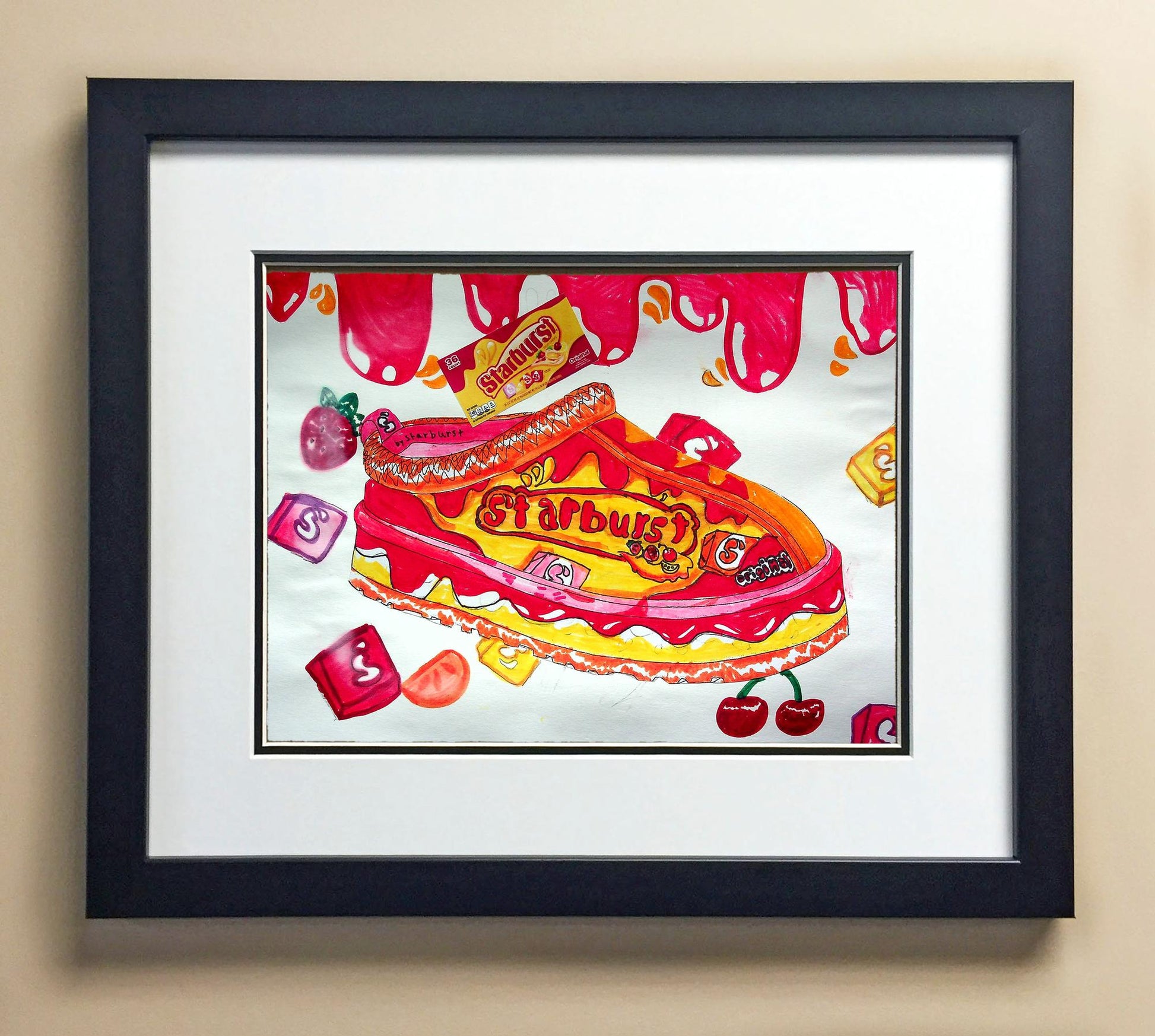 Included with the purchase is the Students Artwork, Frame, double matboard, shatter proof plexiglass, and a ready to hang backerboard with turnbuttons