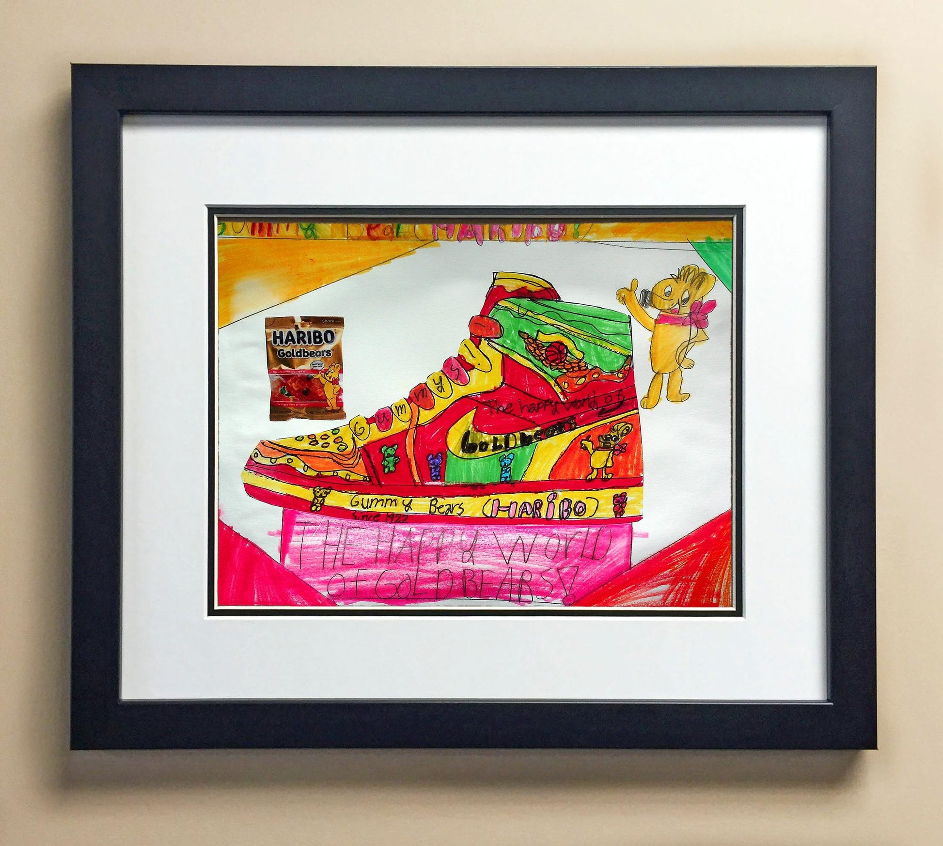 Included with the purchase is the Students Artwork, Frame, double matboard, shatter proof plexiglass, and a ready to hang backerboard with turnbuttons