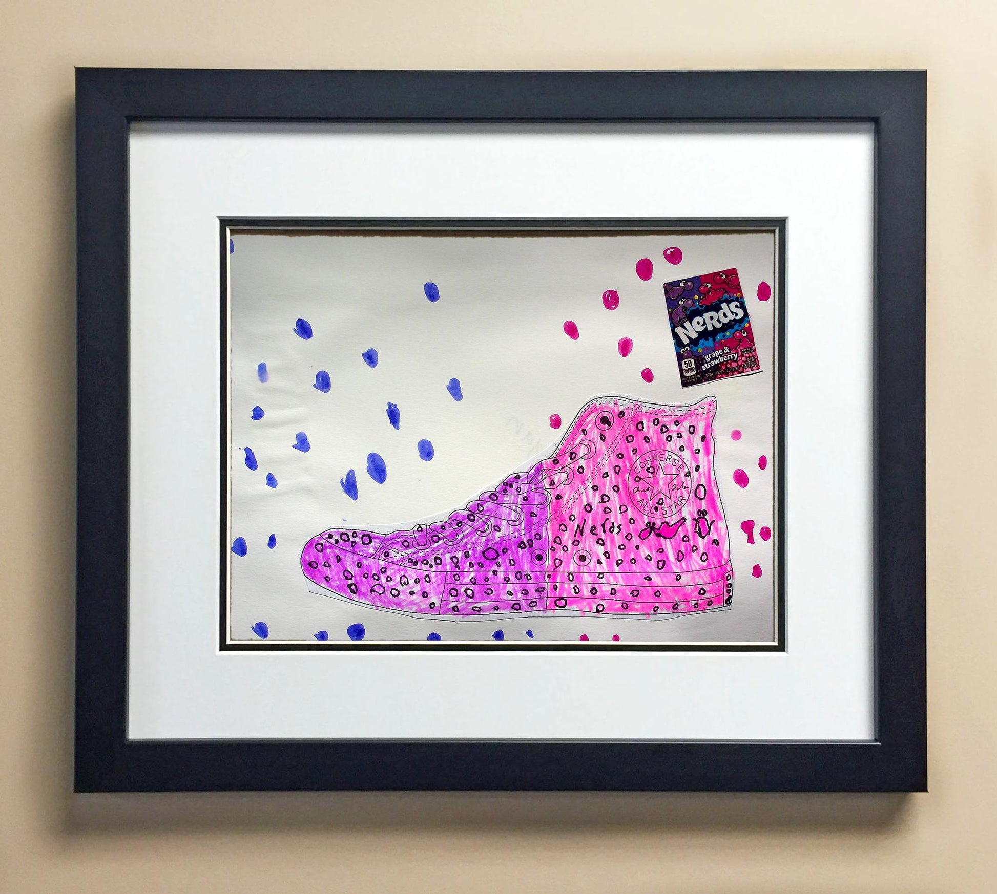 Included with the purchase is the Students Artwork, Frame, double matboard, shatter proof plexiglass, and a ready to hang backerboard with turnbuttons