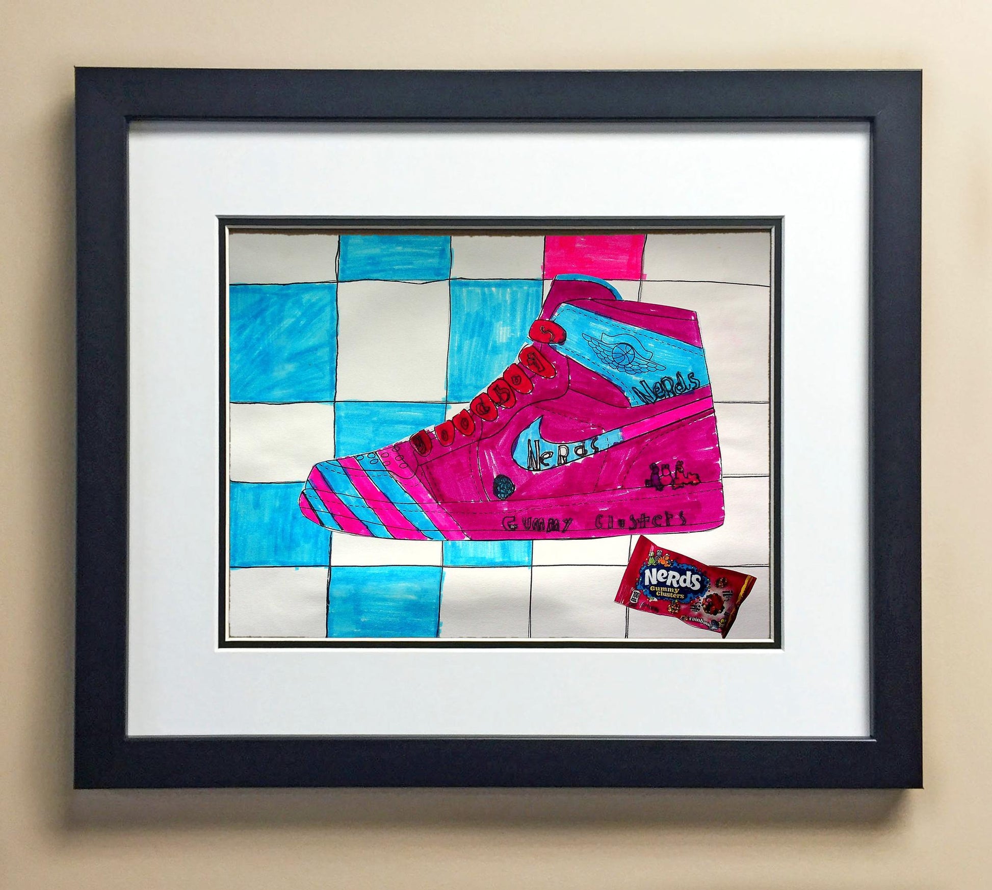 Included with the purchase is the Students Artwork, Frame, double matboard, shatter proof plexiglass, and a ready to hang backerboard with turnbuttons
