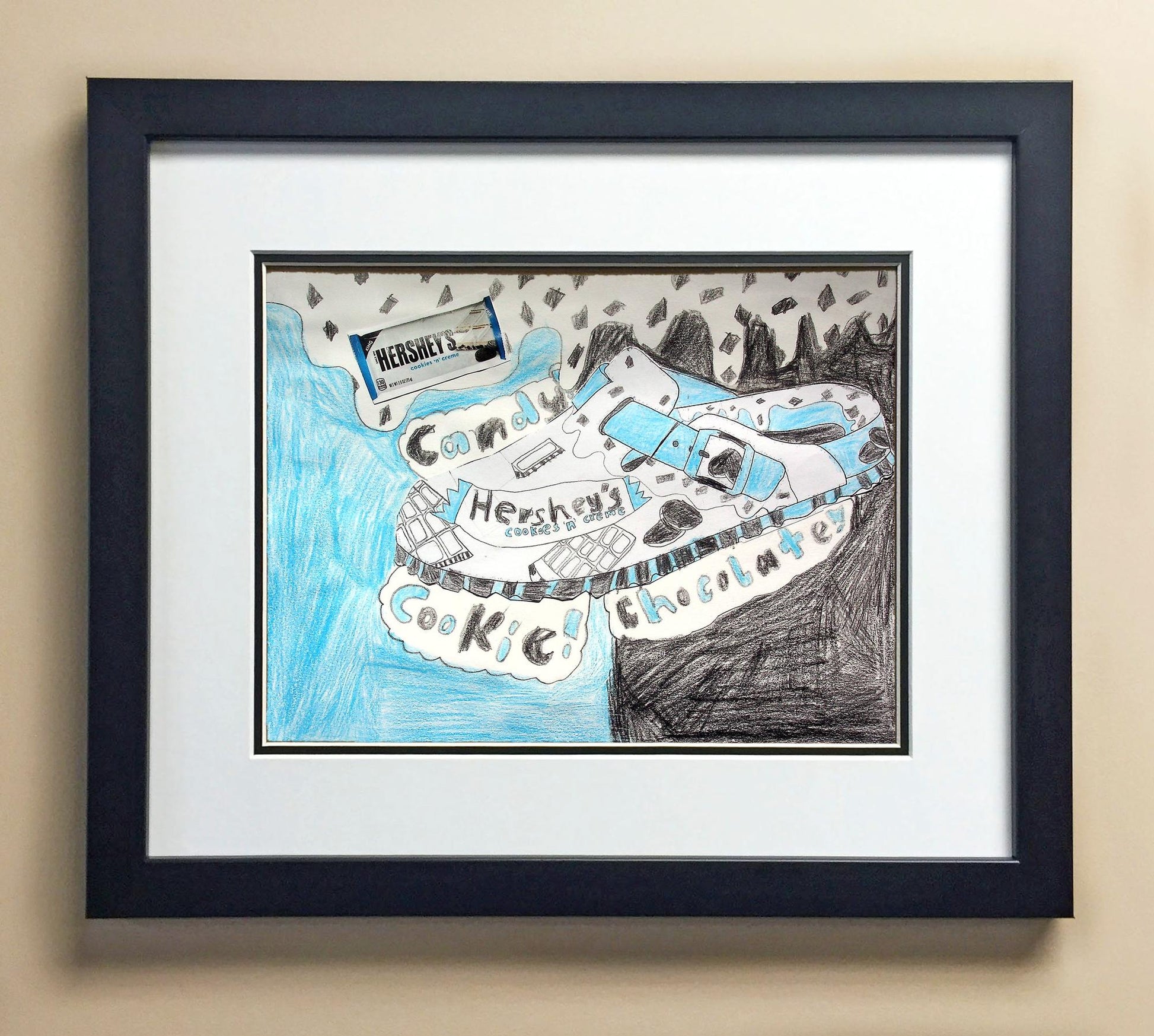 Included with the purchase is the Students Artwork, Frame, double matboard, shatter proof plexiglass, and a ready to hang backerboard with turnbuttons