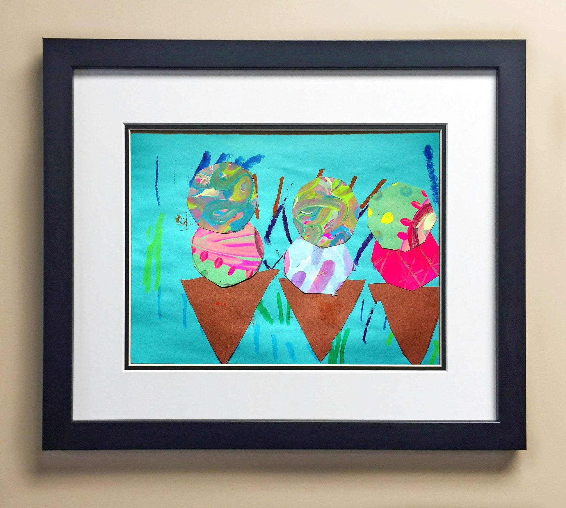 Included with the purchase is the Students Artwork, Frame, double matboard, shatter proof plexiglass, and a ready to hang backerboard with turnbuttons