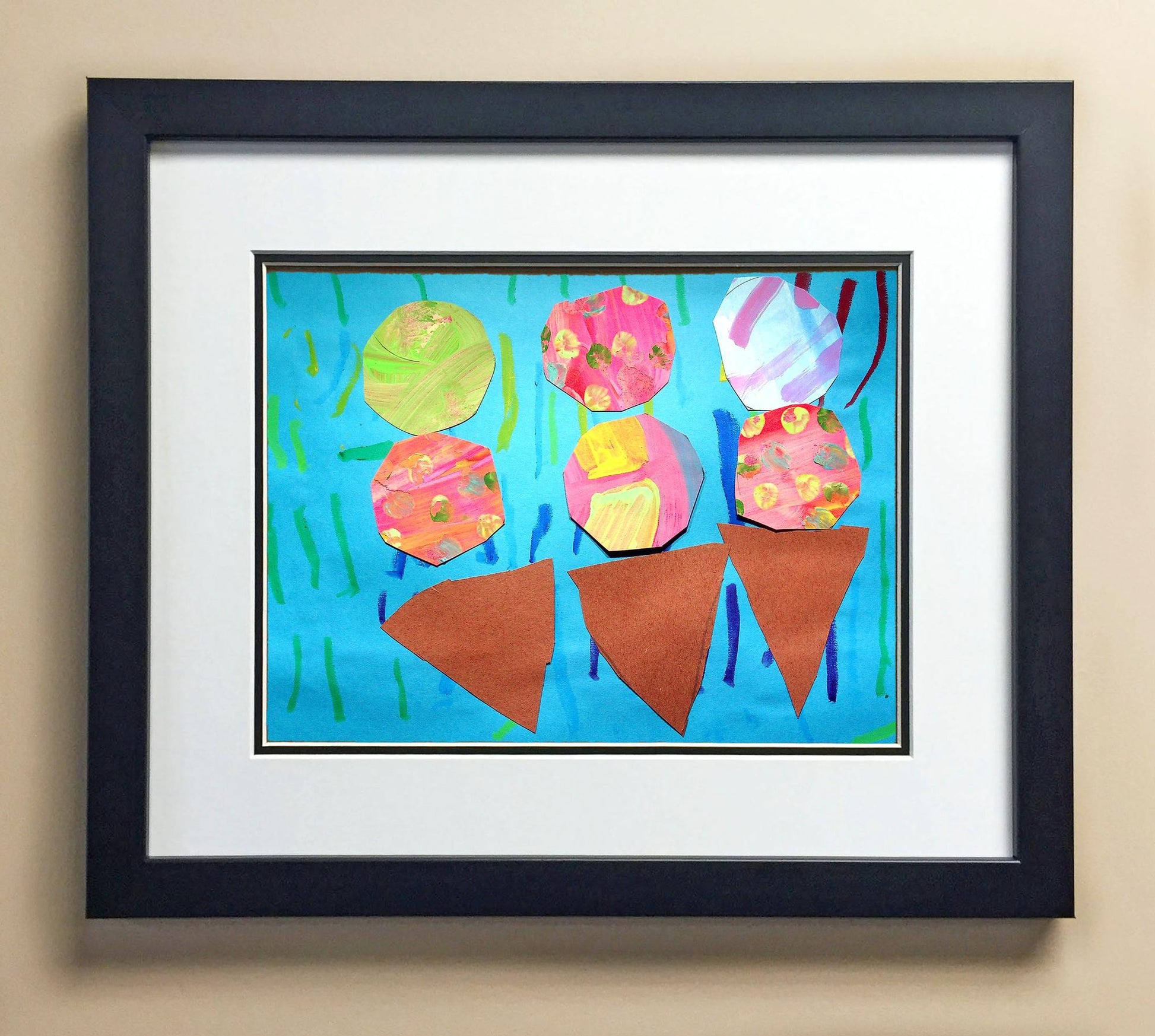Included with the purchase is the Students Artwork, Frame, double matboard, shatter proof plexiglass, and a ready to hang backerboard with turnbuttons