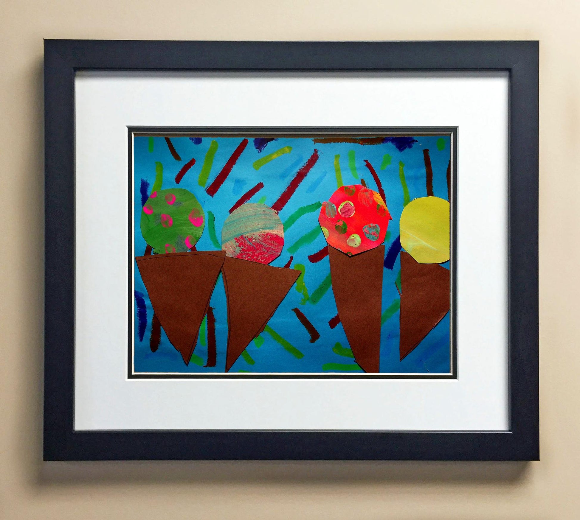 Included with the purchase is the Students Artwork, Frame, double matboard, shatter proof plexiglass, and a ready to hang backerboard with turnbuttons