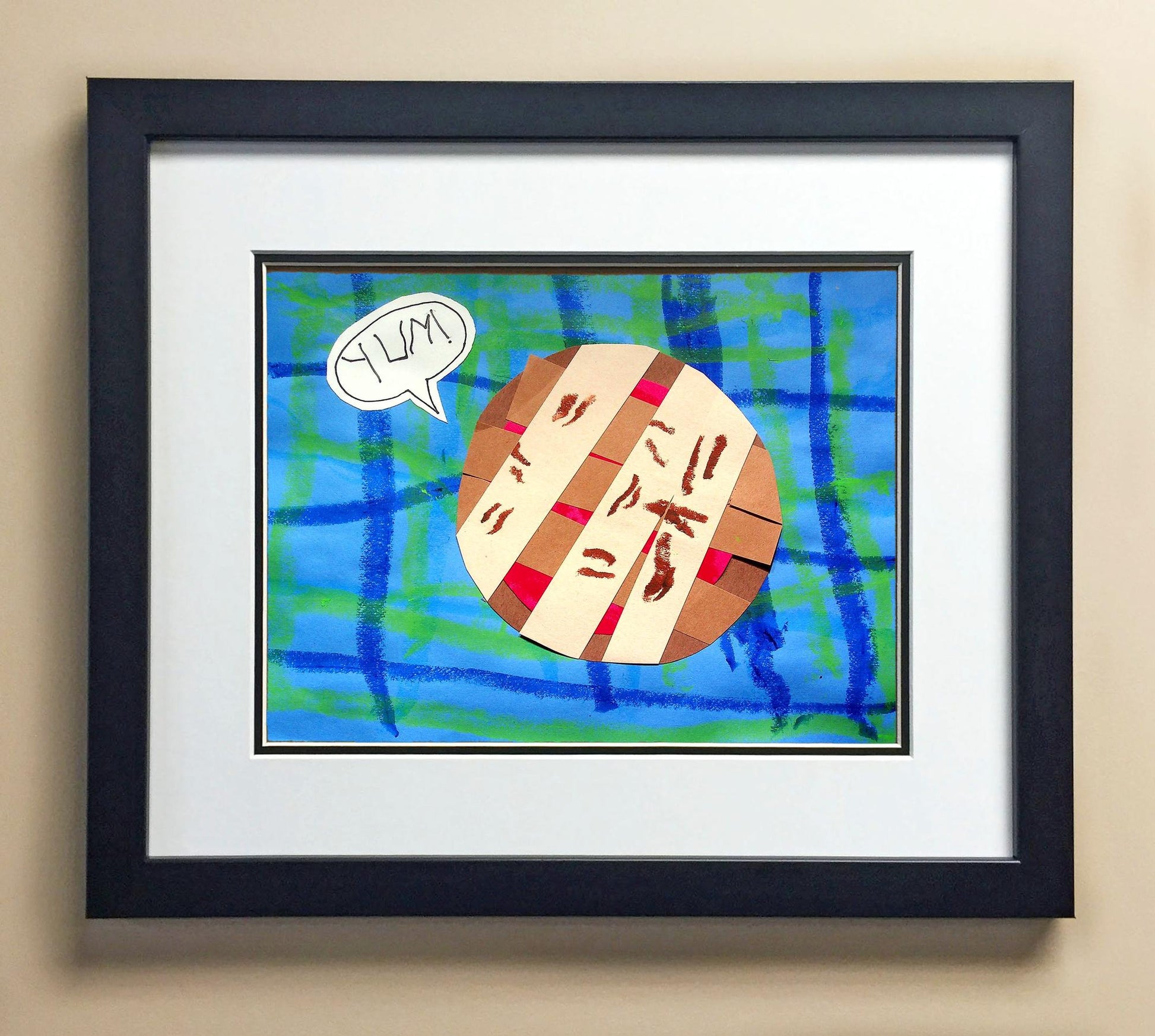 Included with the purchase is the Students Artwork, Frame, double matboard, shatter proof plexiglass, and a ready to hang backerboard with turnbuttons