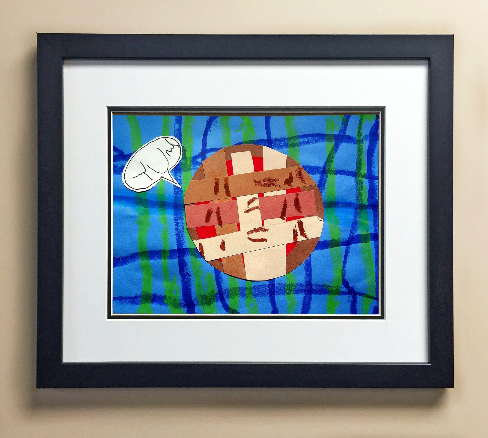 Included with the purchase is the Students Artwork, Frame, double matboard, shatter proof plexiglass, and a ready to hang backerboard with turnbuttons